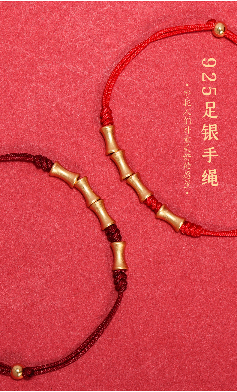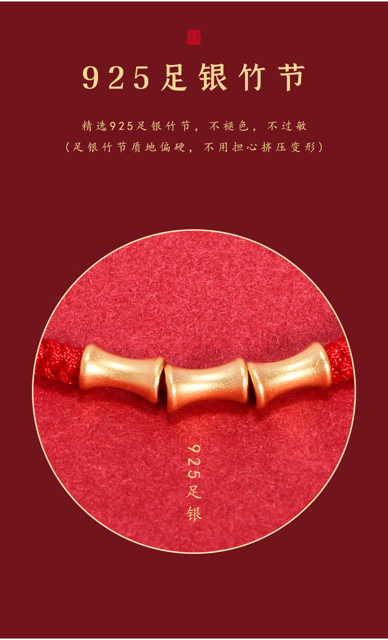 新款S925银竹节节高升纯手工编织红绳手绳上岸考研情侣手链