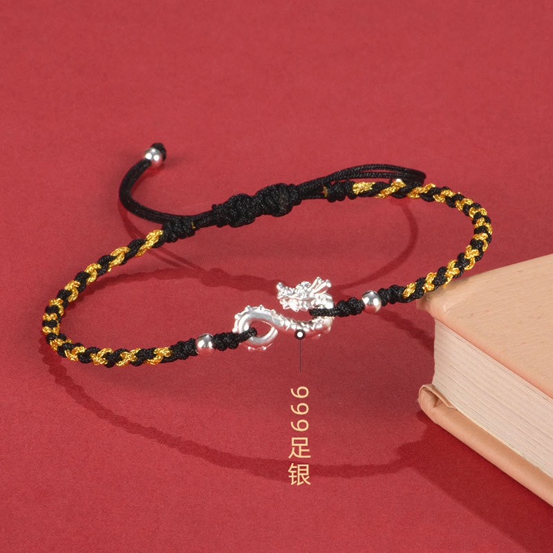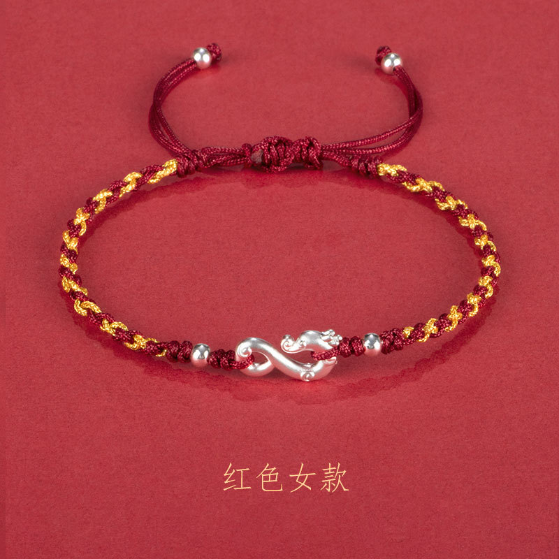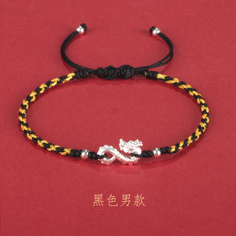 情侣款S999银如意龙生肖编织红绳手链女生黑绳男女款手绳女友礼物