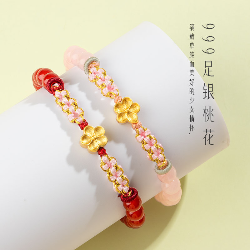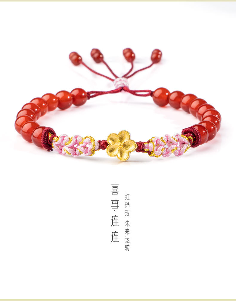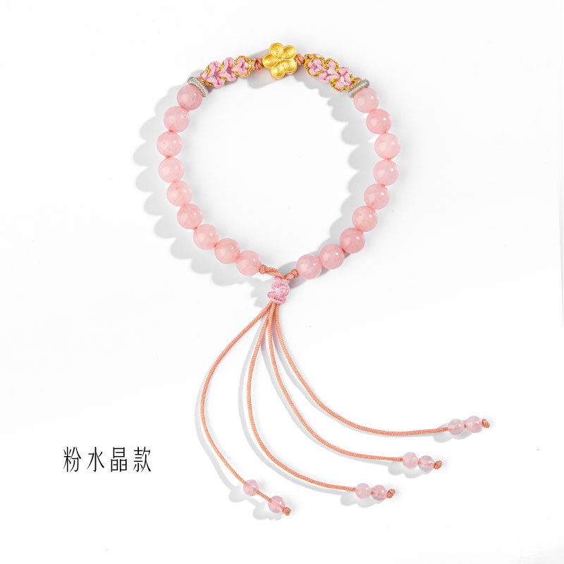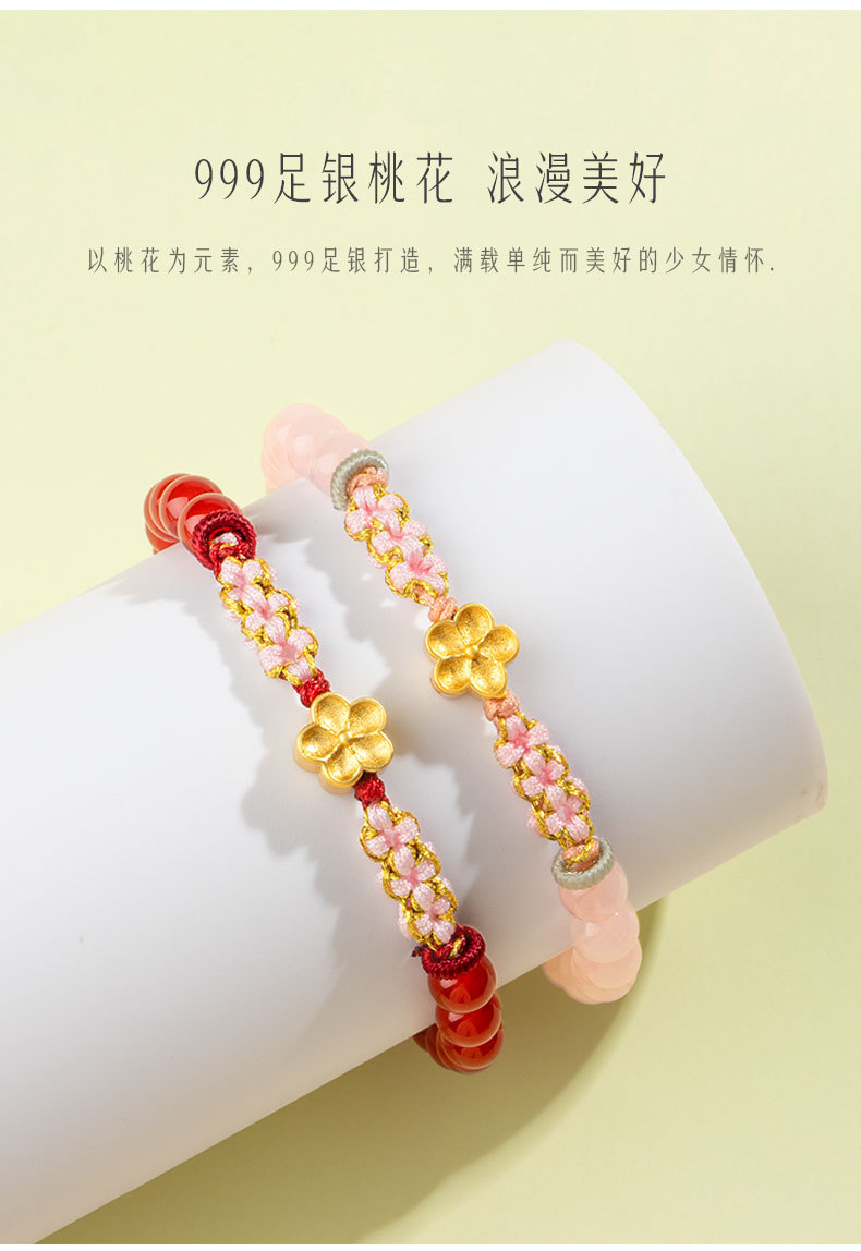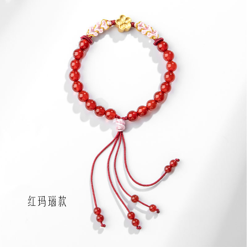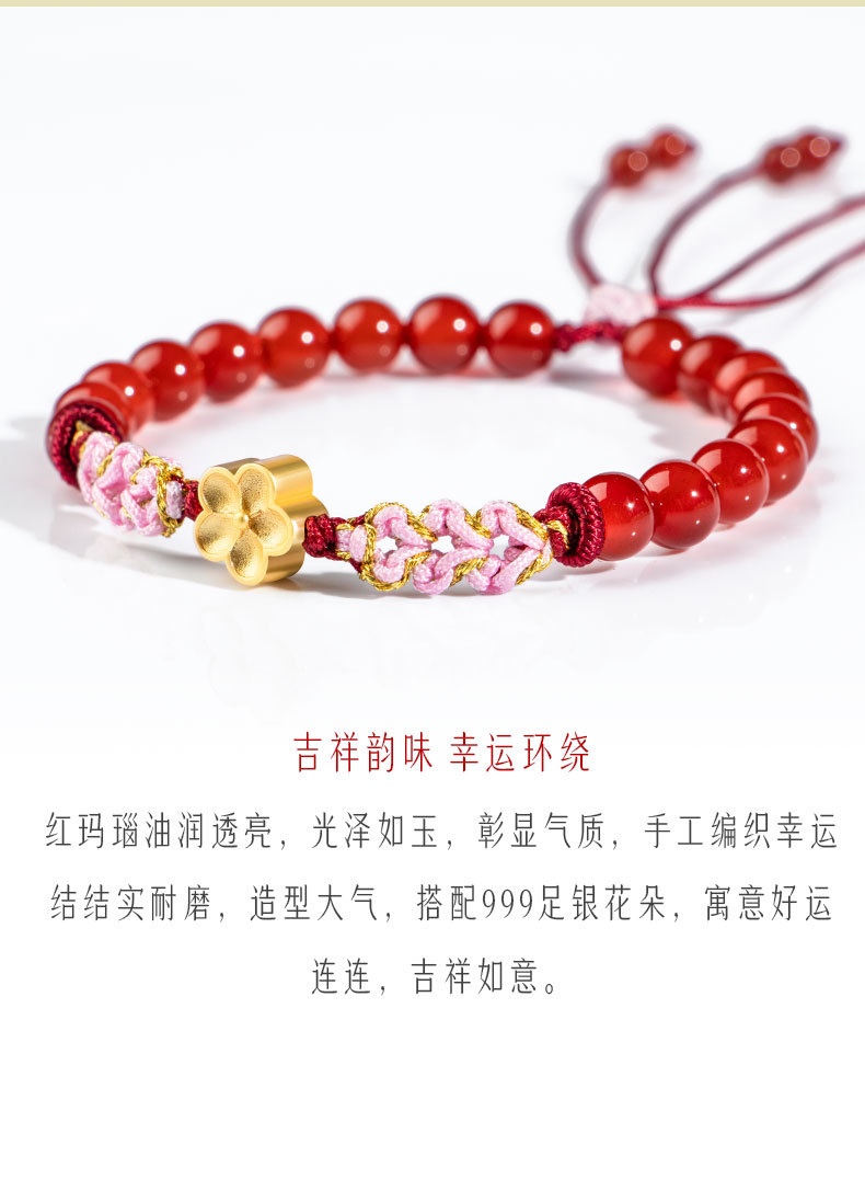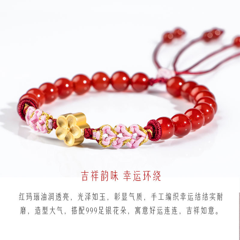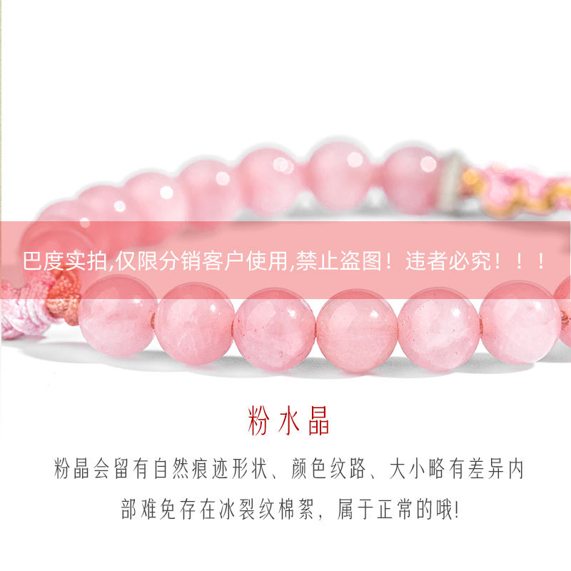 冬季新品天然粉晶手工编织红绳手绳天然红玛瑙桃花手链女礼物