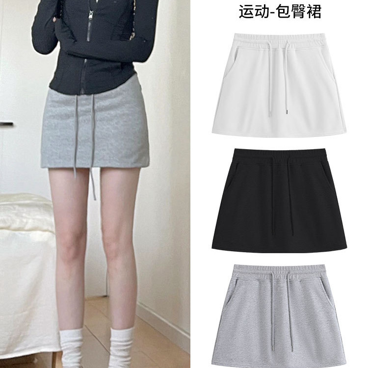 灰色运动短裙女春夏2025新款高腰a字显瘦半身裙包臀裙小个子裙裤