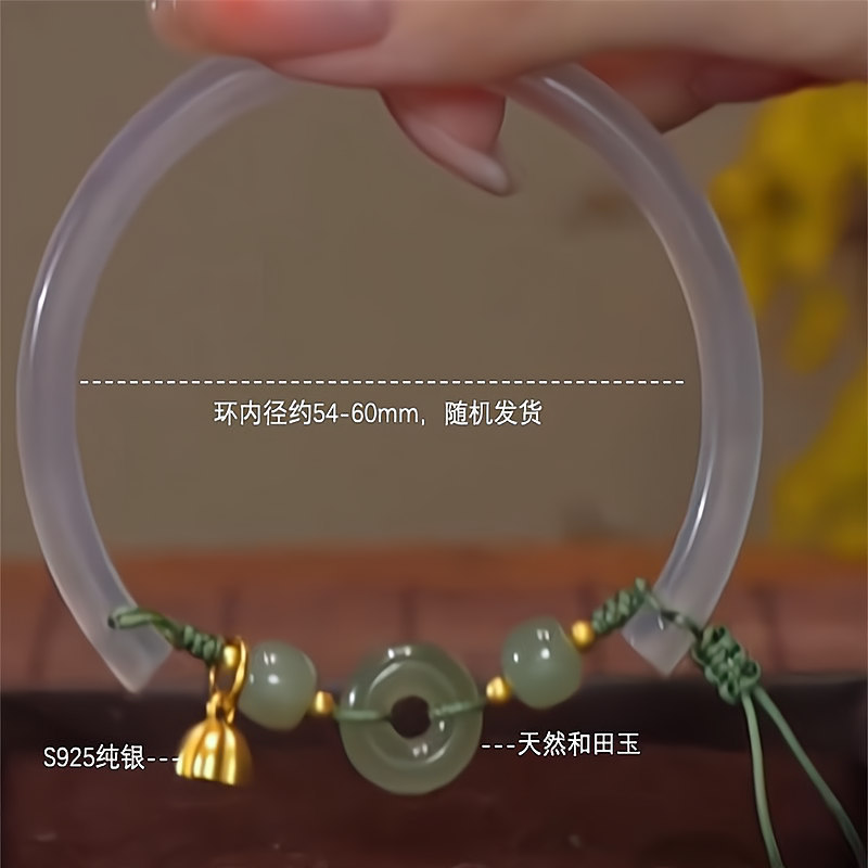 天然和田玉平安扣玉髓手镯轻奢小众转运招财手链女送礼物编织莲蓬