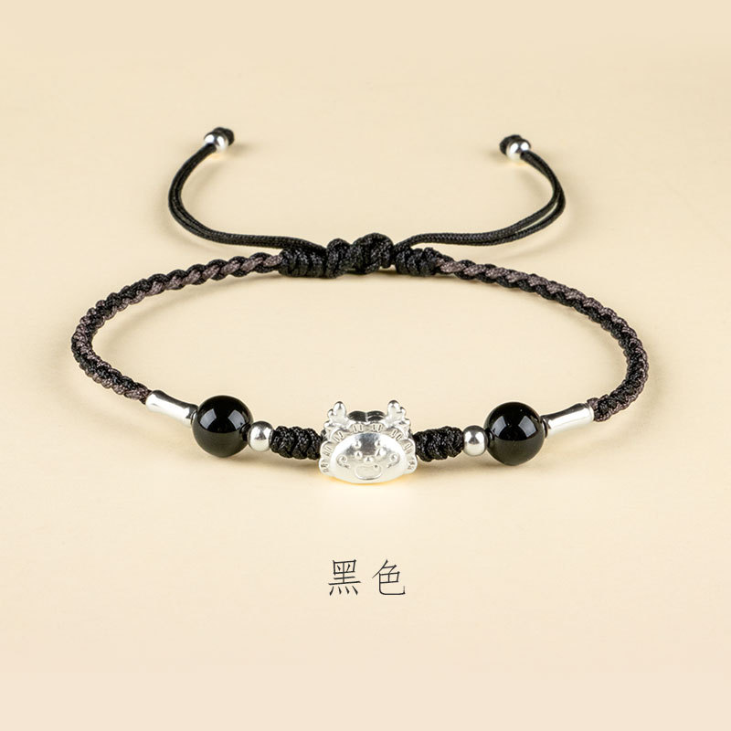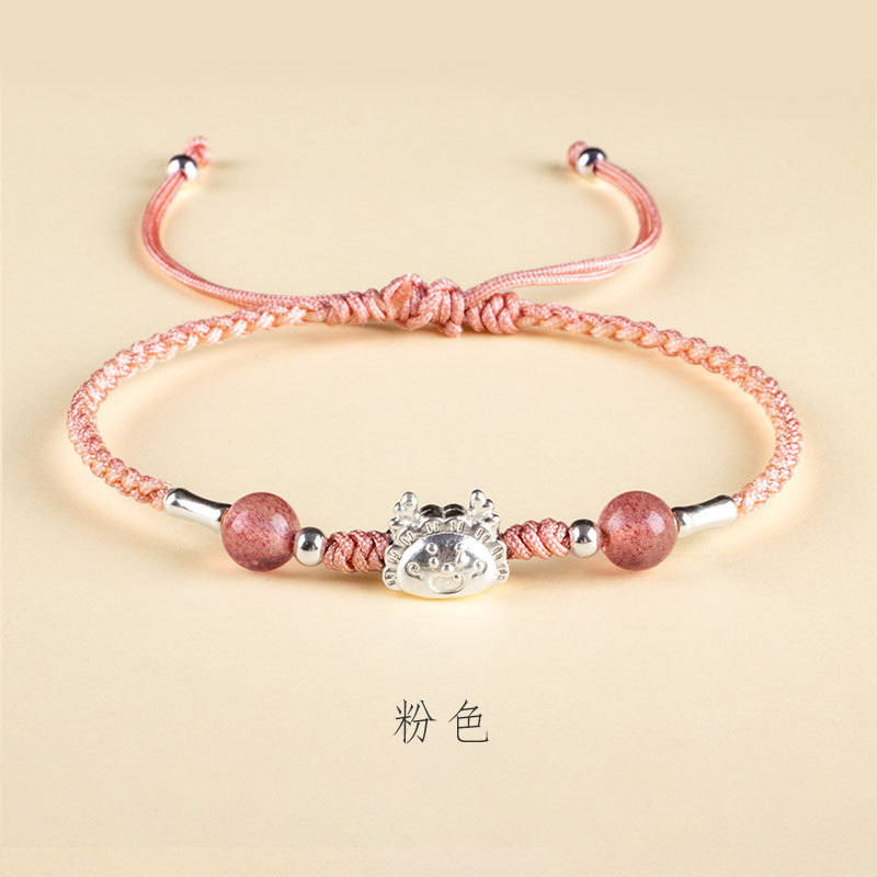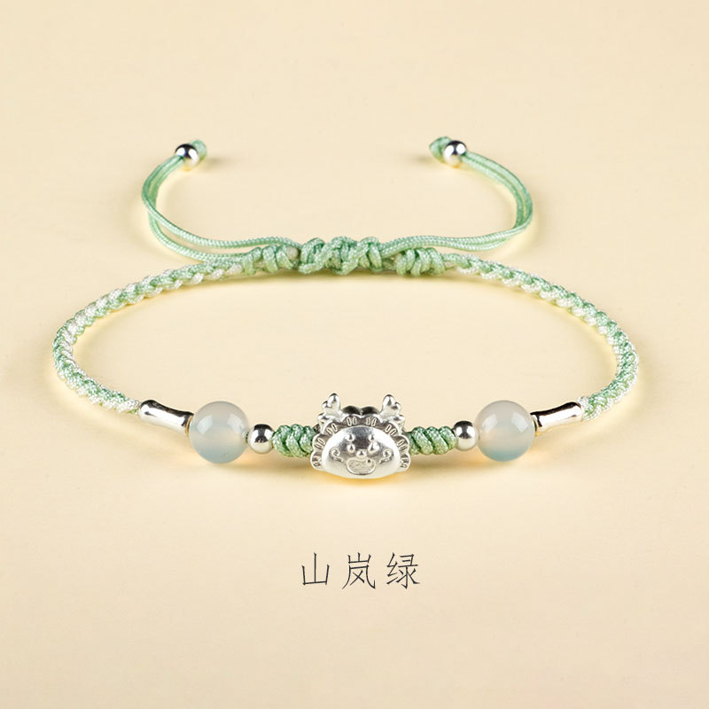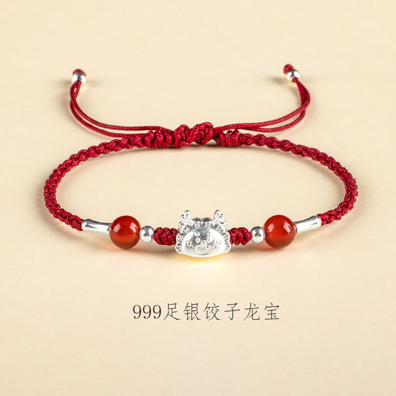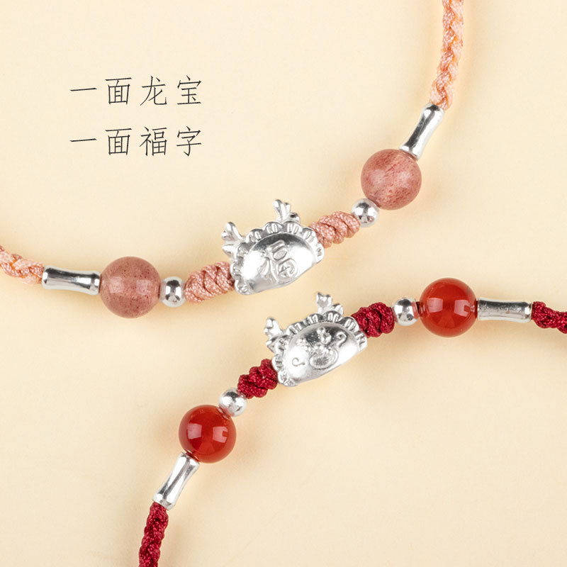 S999银龙宝宝多色编织红绳手绳龙年生肖纯银编织手链女本命年礼物