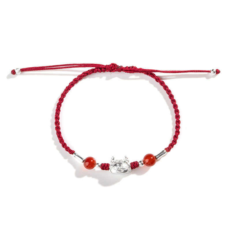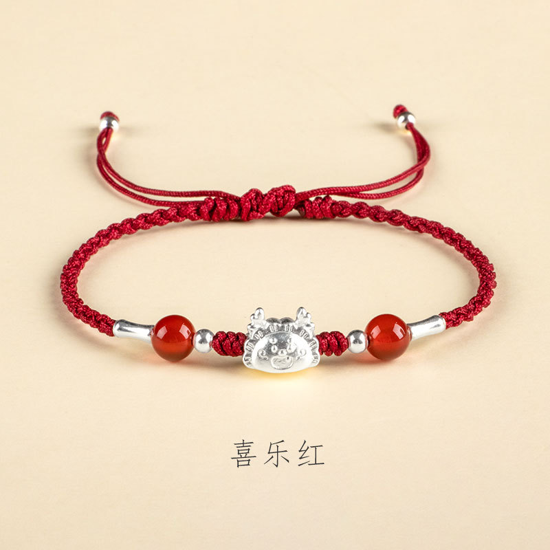 喜乐红S925银龙宝宝红玛瑙编织手链