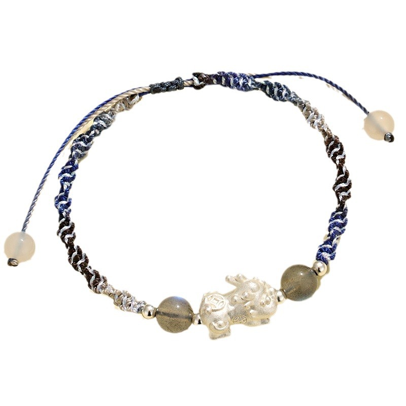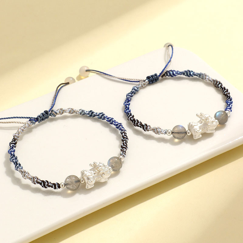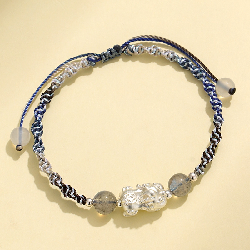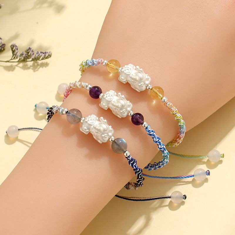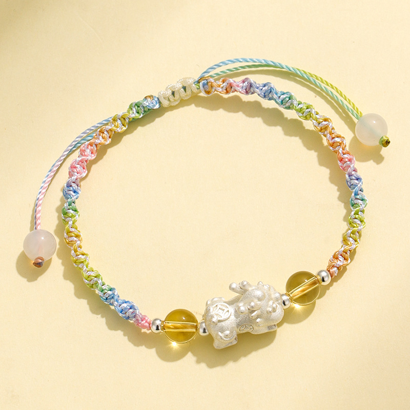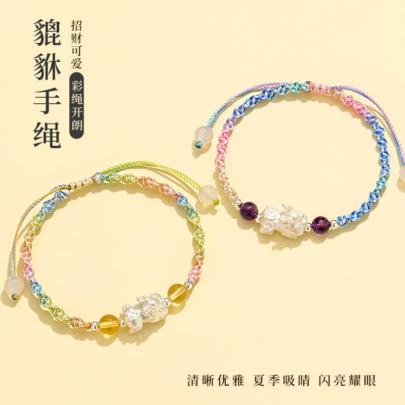 新品黄水晶金属貔貅999银情侣手工编织手绳成品转运珠龙年手绳