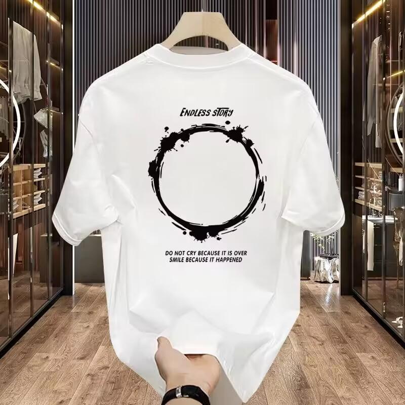 时尚纯棉短袖T恤男士夏季潮牌印花上衣宽松百搭圆领半袖休闲体恤