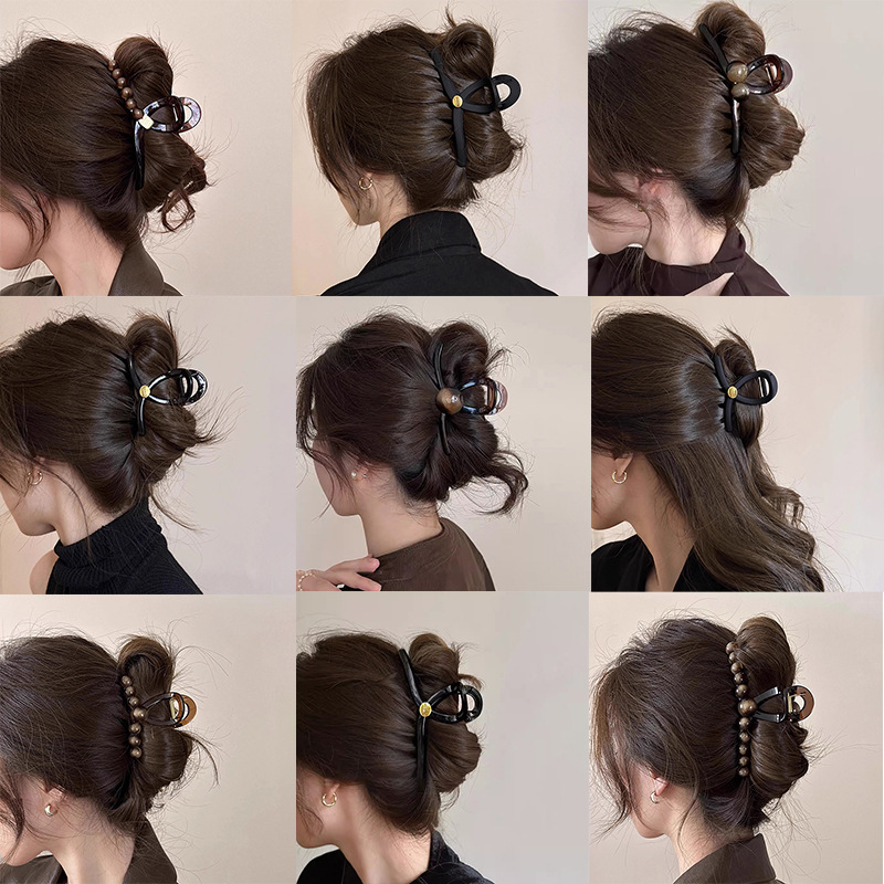 气质渐变圆珠高级感抓夹女盘发量大后脑勺鲨鱼夹大号发夹新款