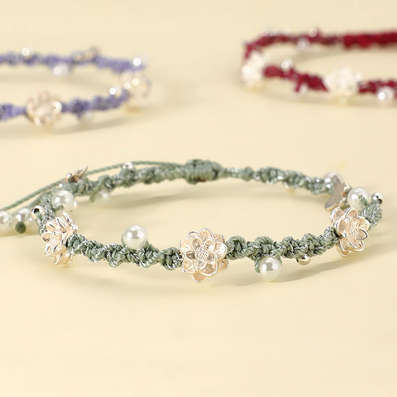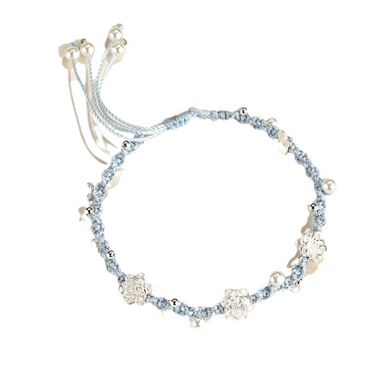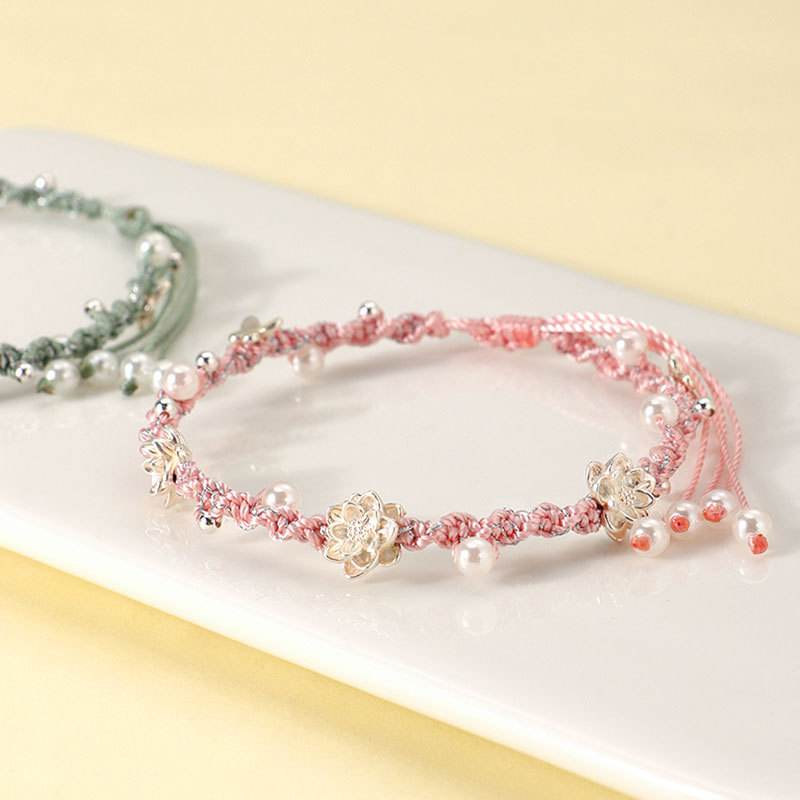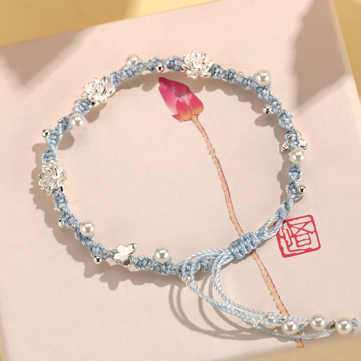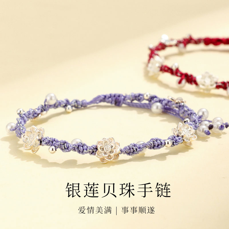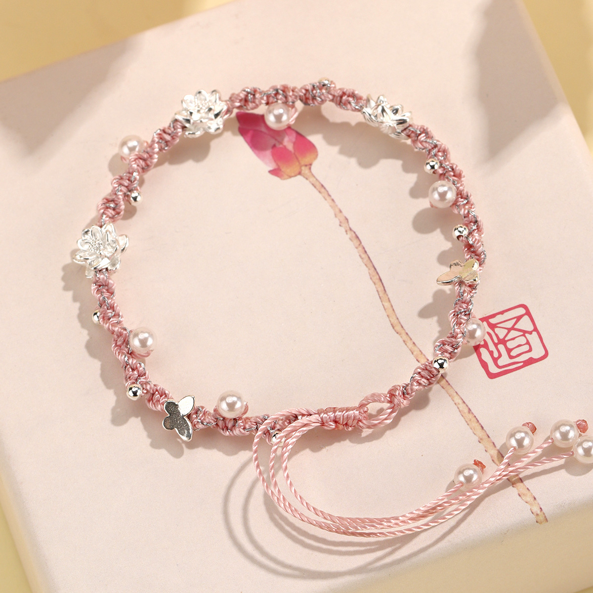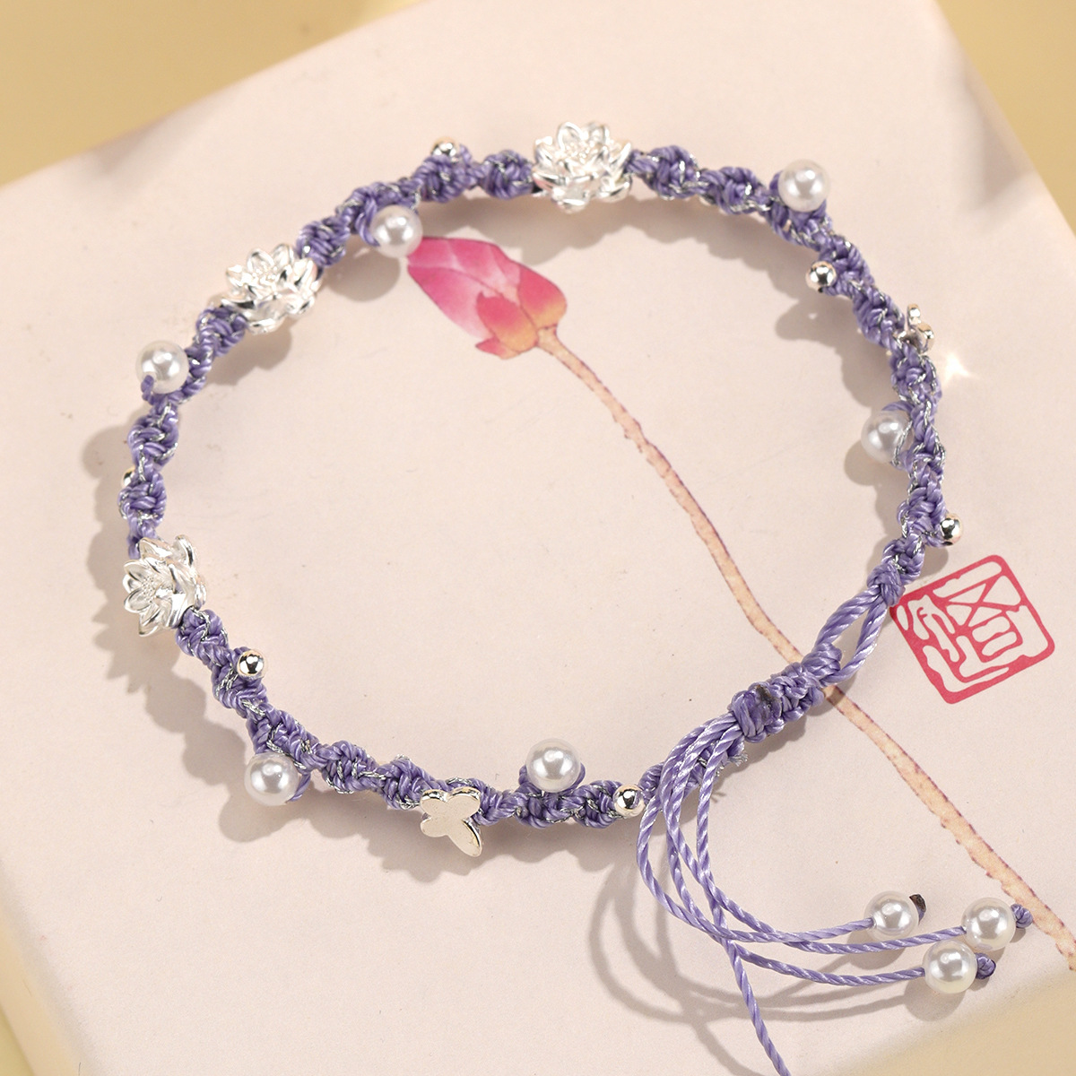 925银紫色贝珠银蝴蝶流苏手链女小众高级感春意绿手串编织手绳