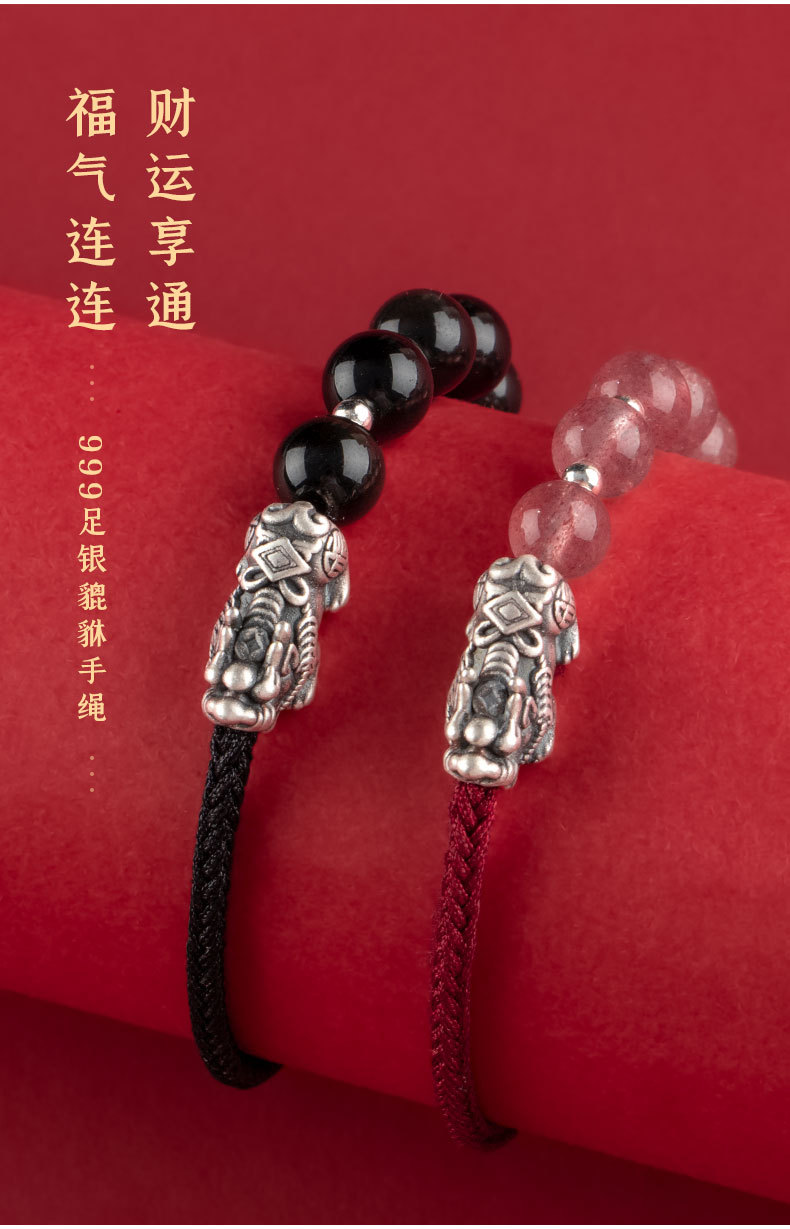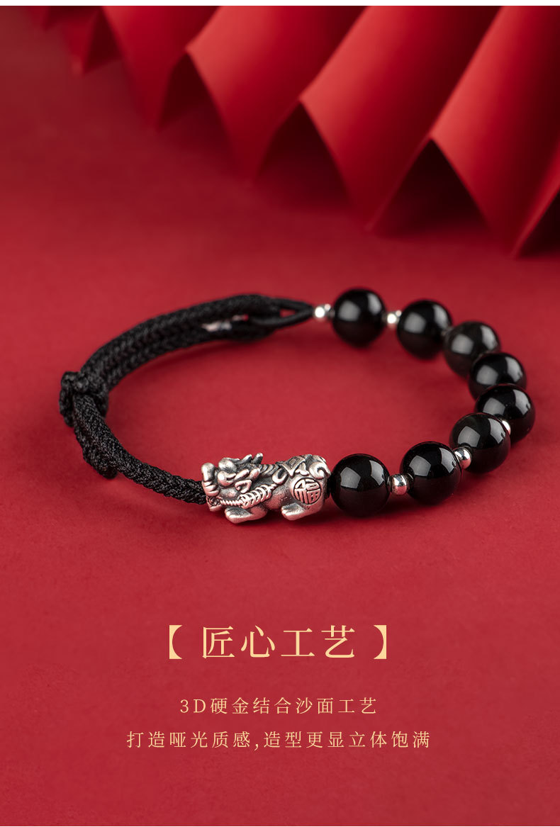 貔貅黑曜石男士手链999纯银草莓晶男女款手绳手串情侣生日礼物送