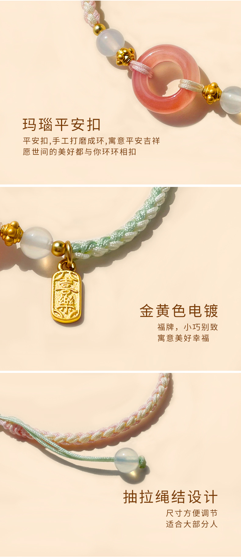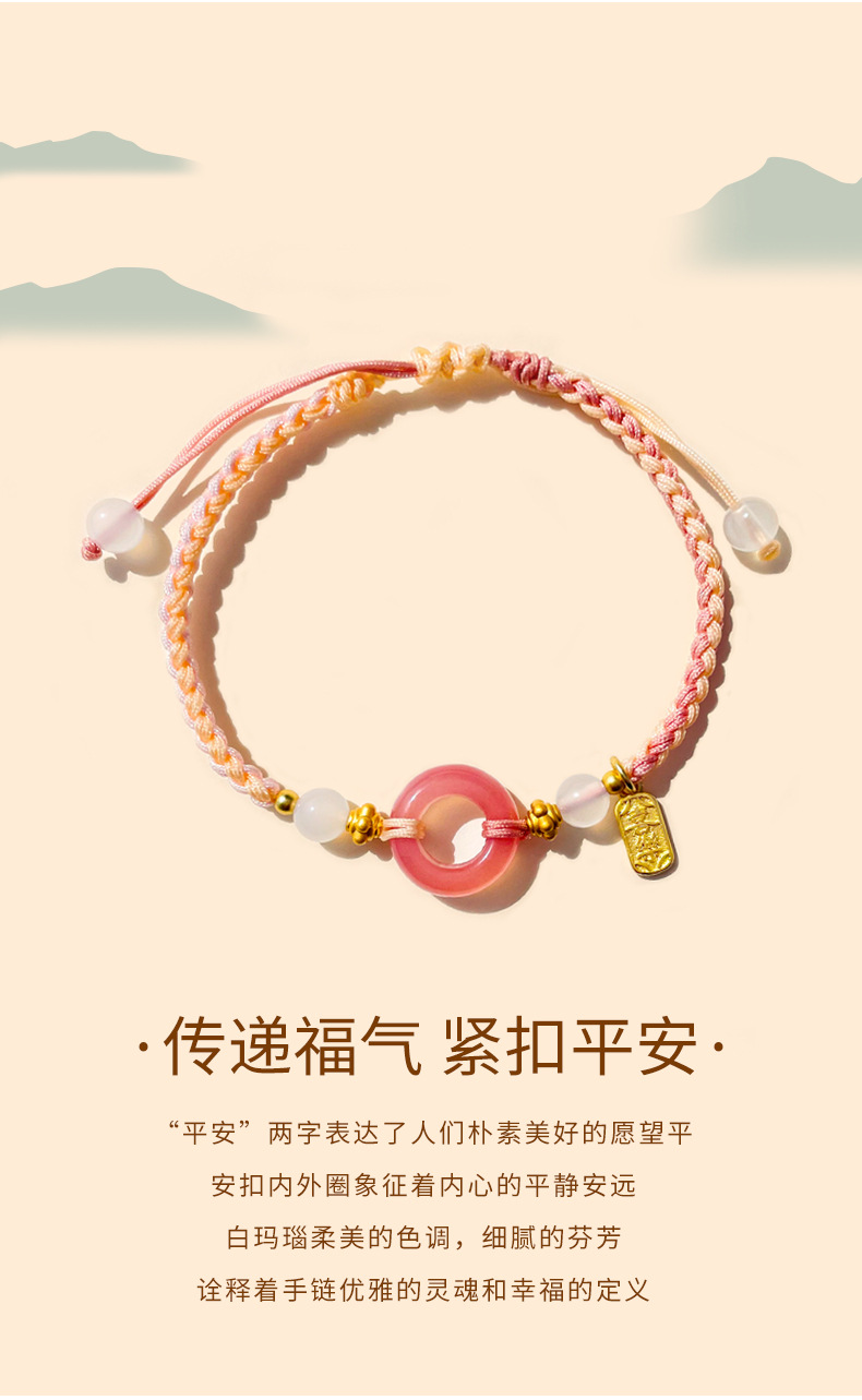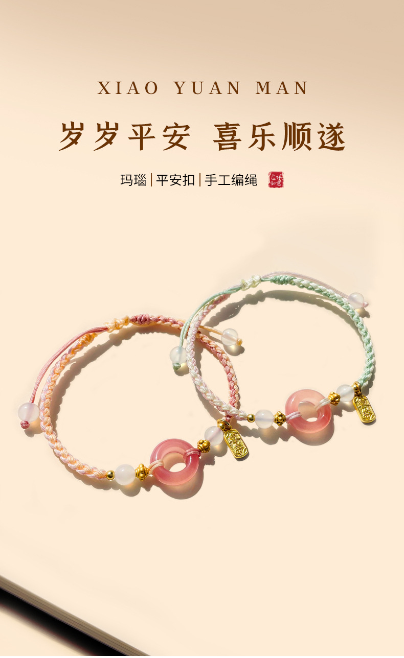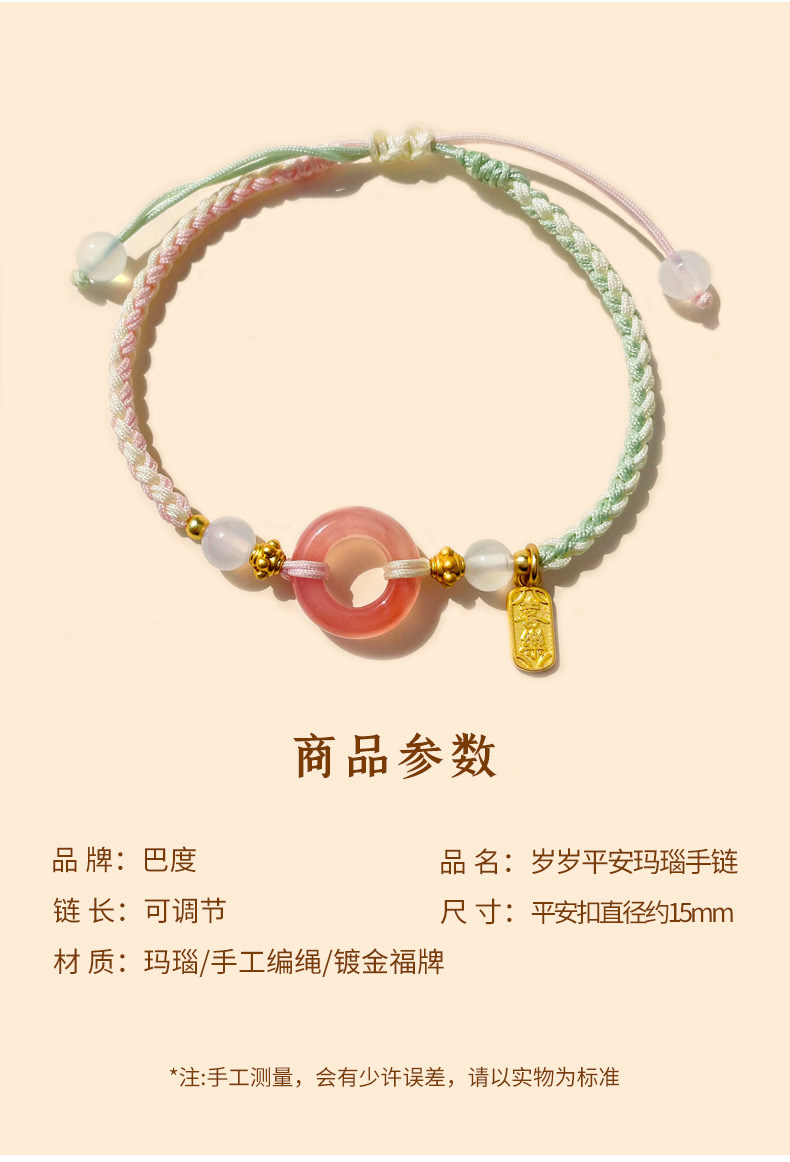 情侣款平安扣手工编织手绳可拉伸天然玛瑙手链女友生日送礼物