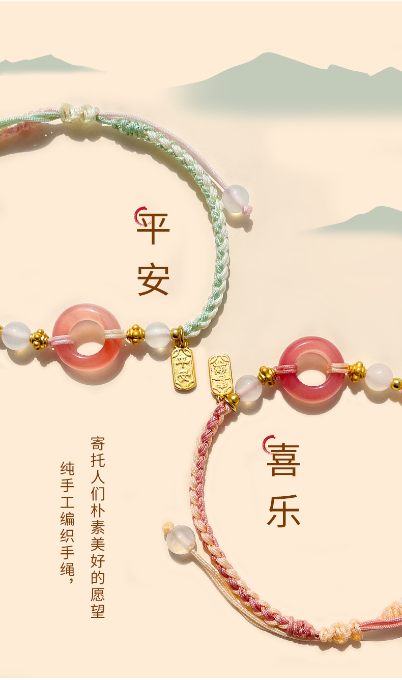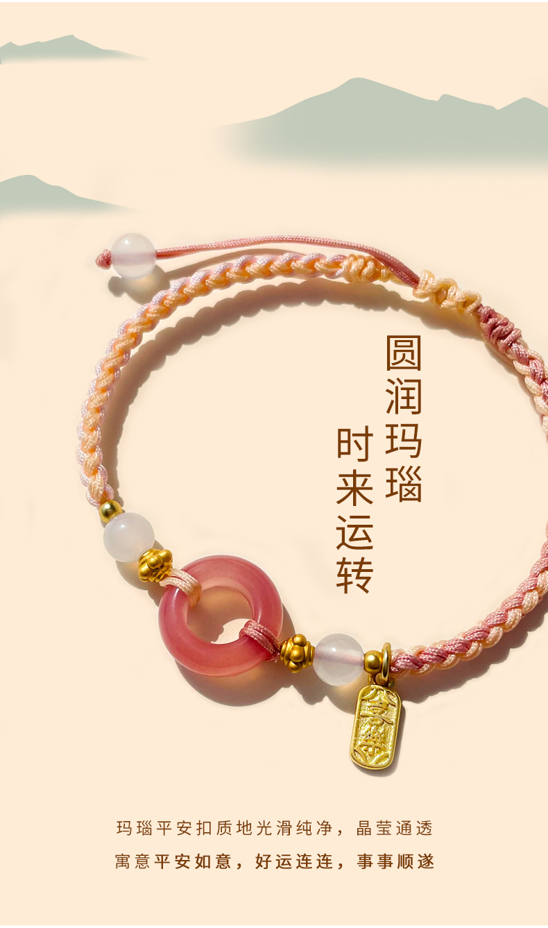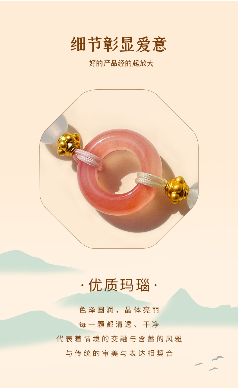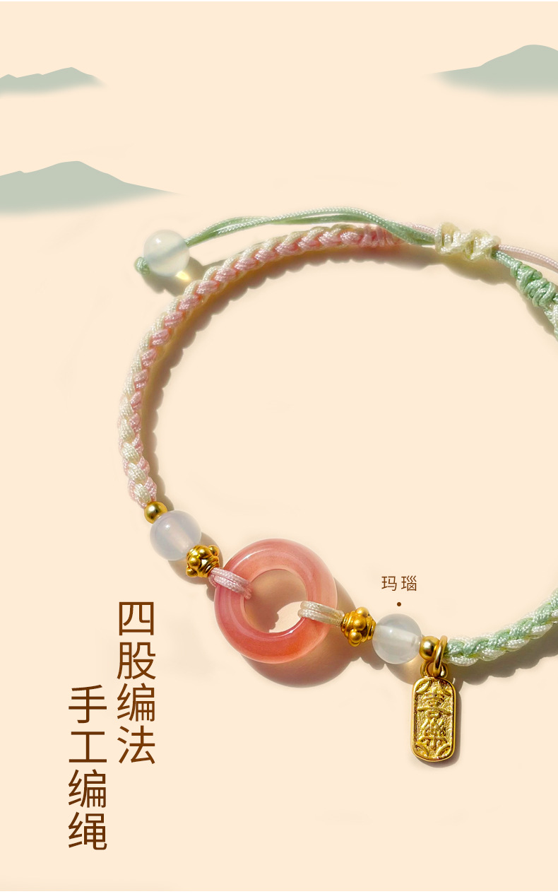 情侣款平安扣手工编织手绳可拉伸天然玛瑙手链女友生日送礼物
