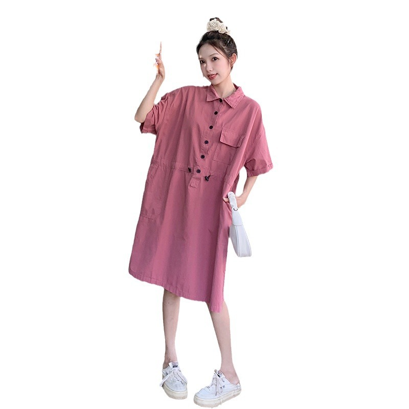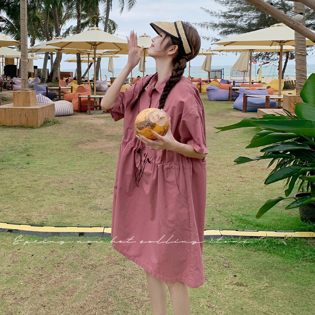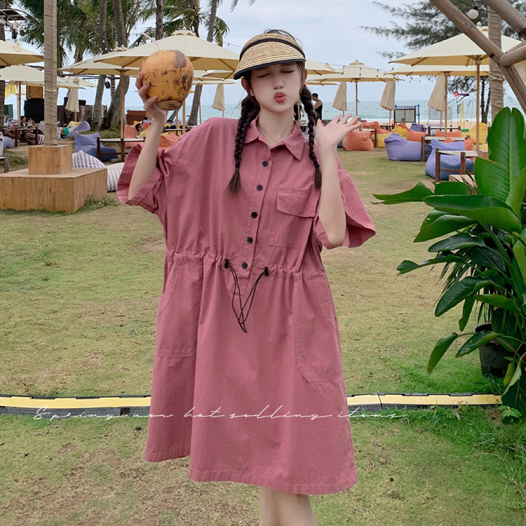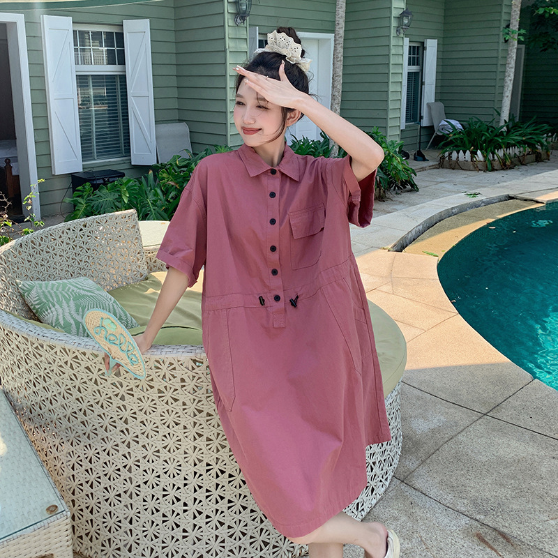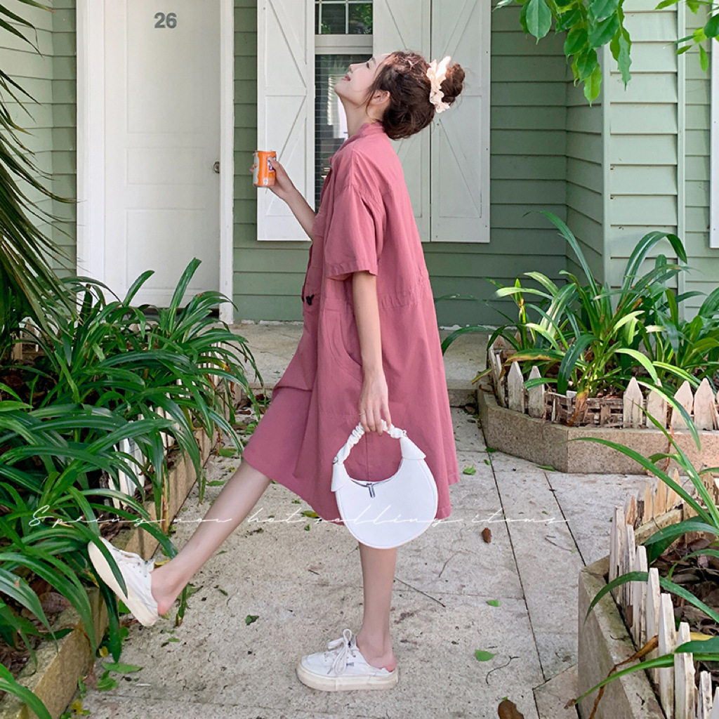 工装中长款衬衫裙polo领连衣裙设计感休闲气质裙法式赫本风收腰