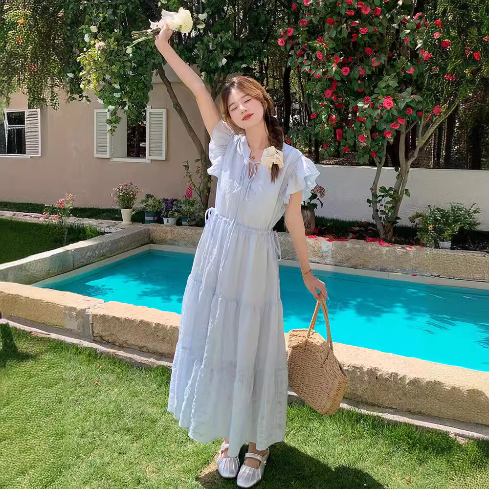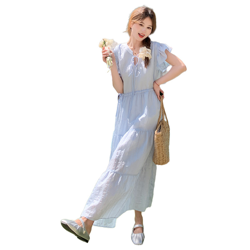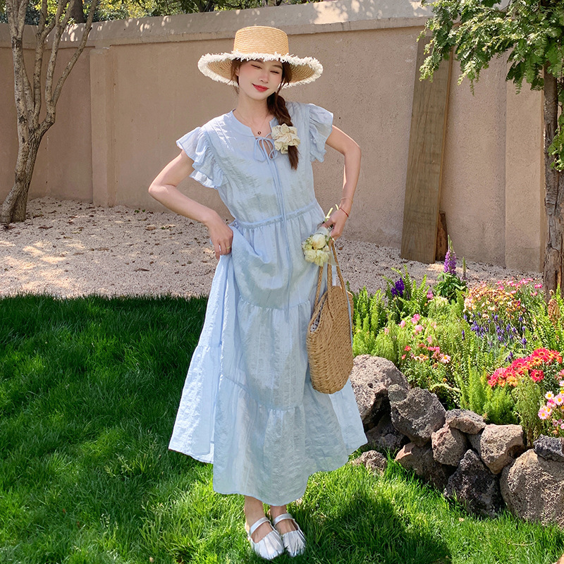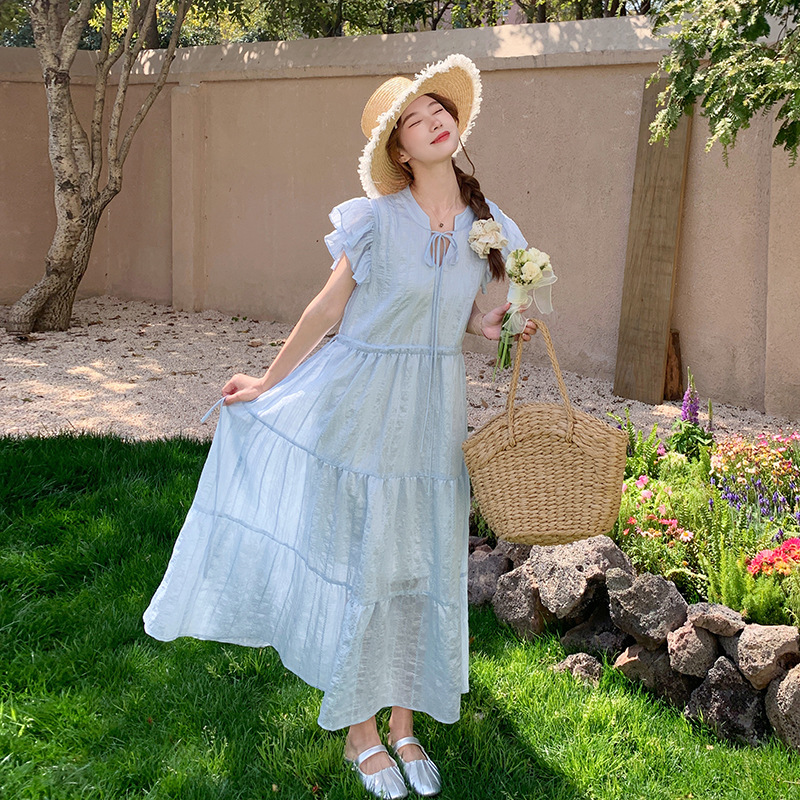 天丝提花飞飞袖夏季色连衣裙女夏季新款宽松显瘦衬衫裙法式