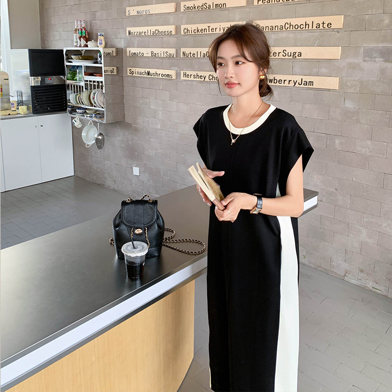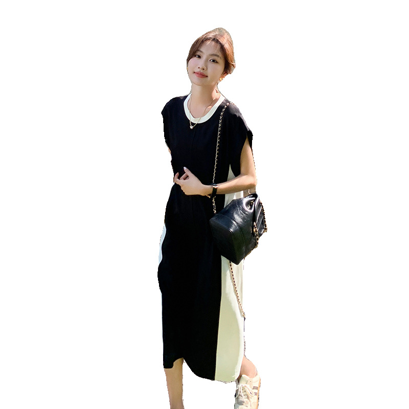 黑色法式圆领连衣裙女赫本风设计感裙子小众修身气质长裙套装夏季