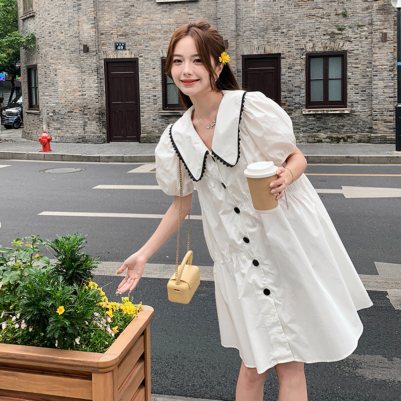 法式娃娃领甜美年新款夏季短款polo连衣裙子女茶歇法式小众