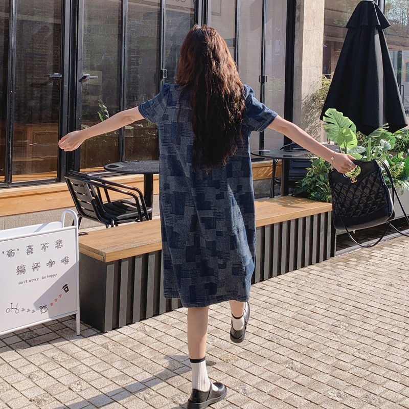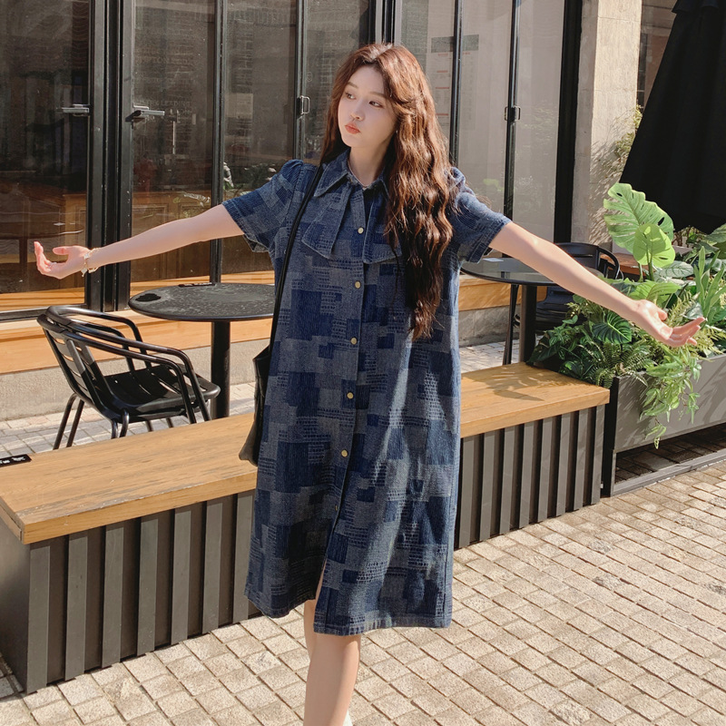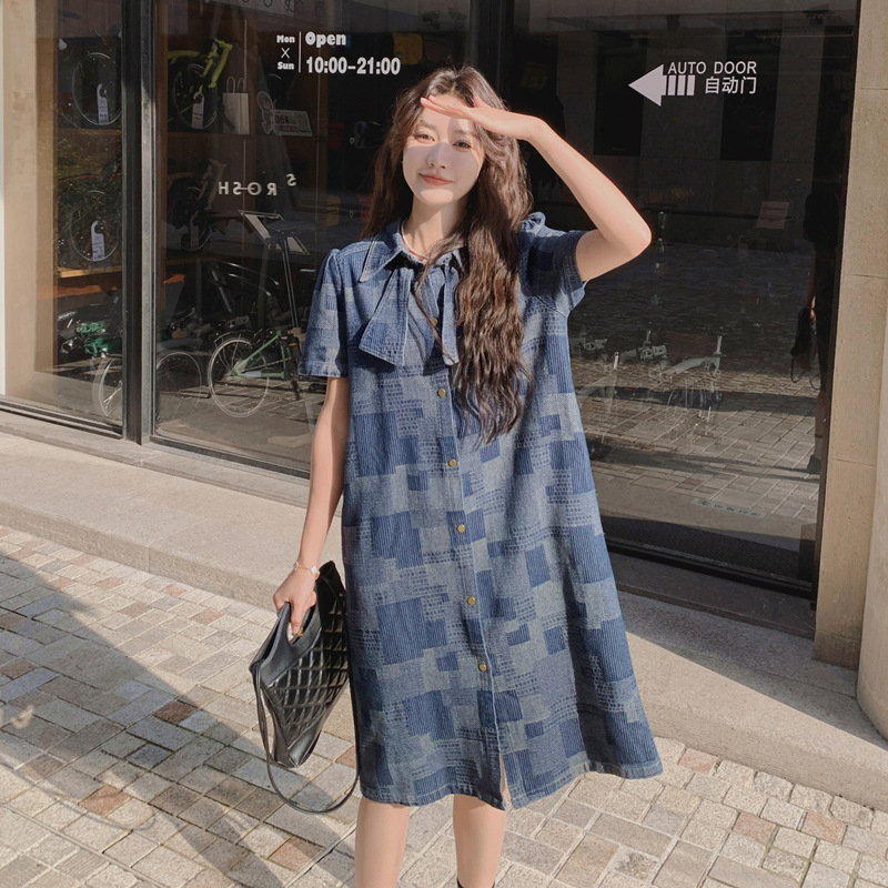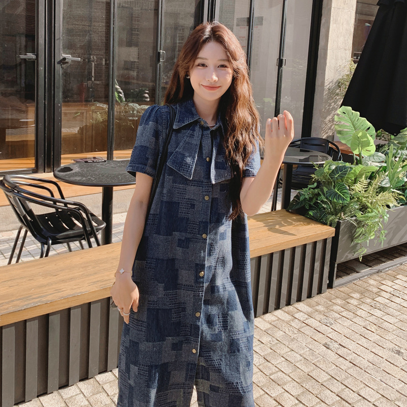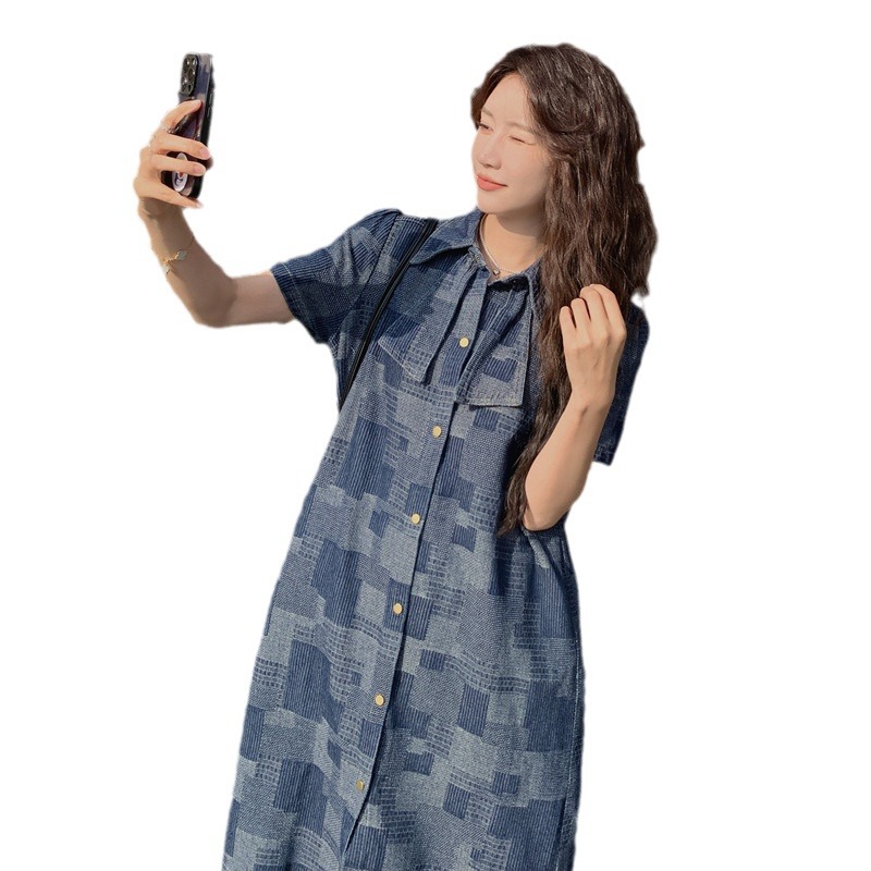 工艺色织设计款牛仔连衣裙子夏季遮肚显瘦收腰设计感小众女梨形身
