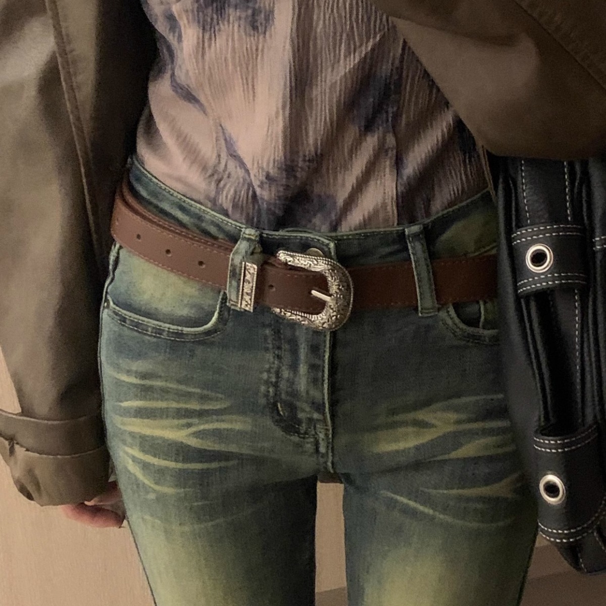 新款 复古老式棕色雕花皮带腰带 气质百搭ins博主同款牛仔腰