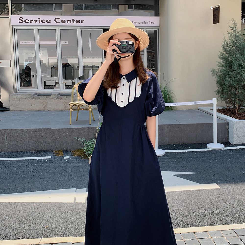 松紧腰衬衫式女夏天新款女装小个子休闲新中式连衣裙夏季