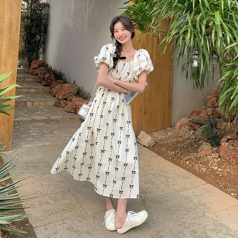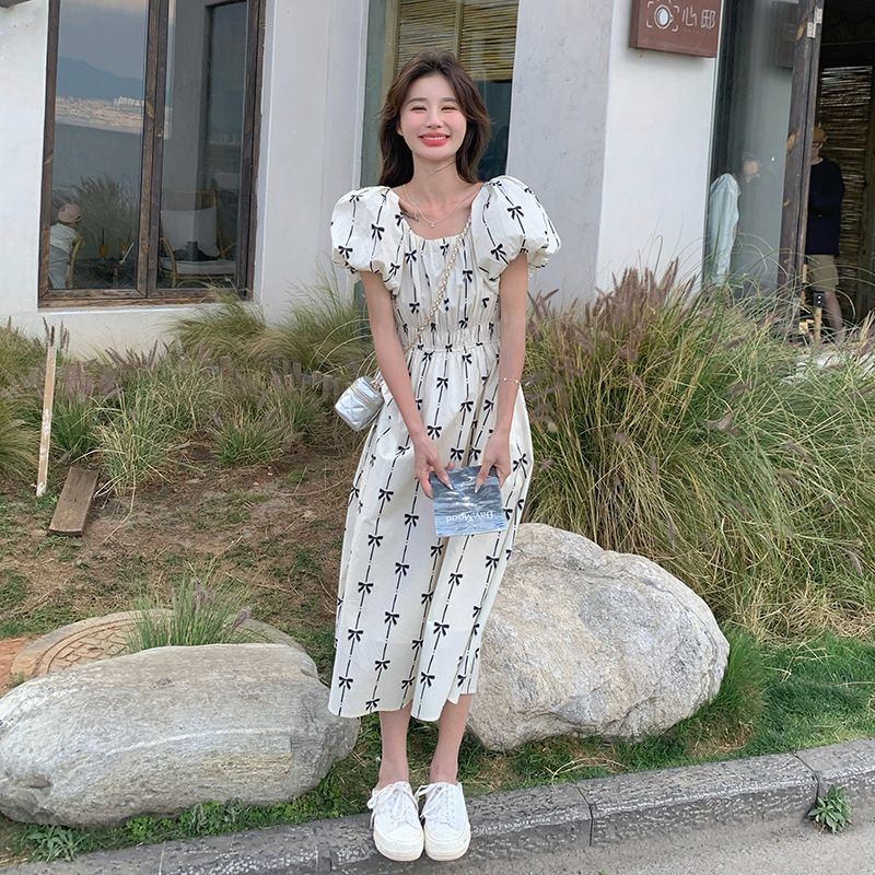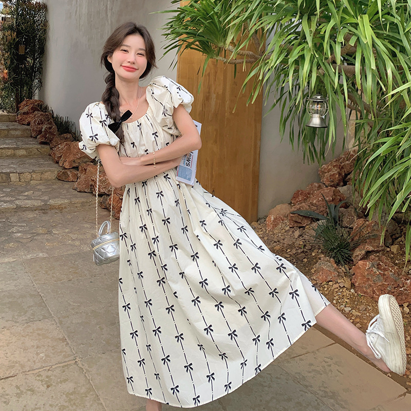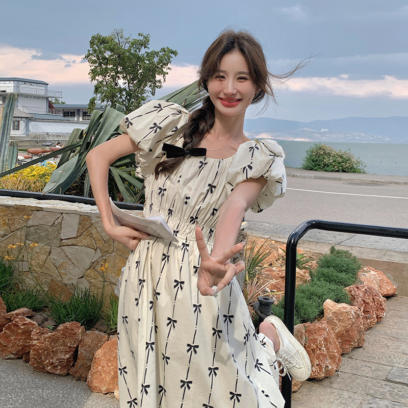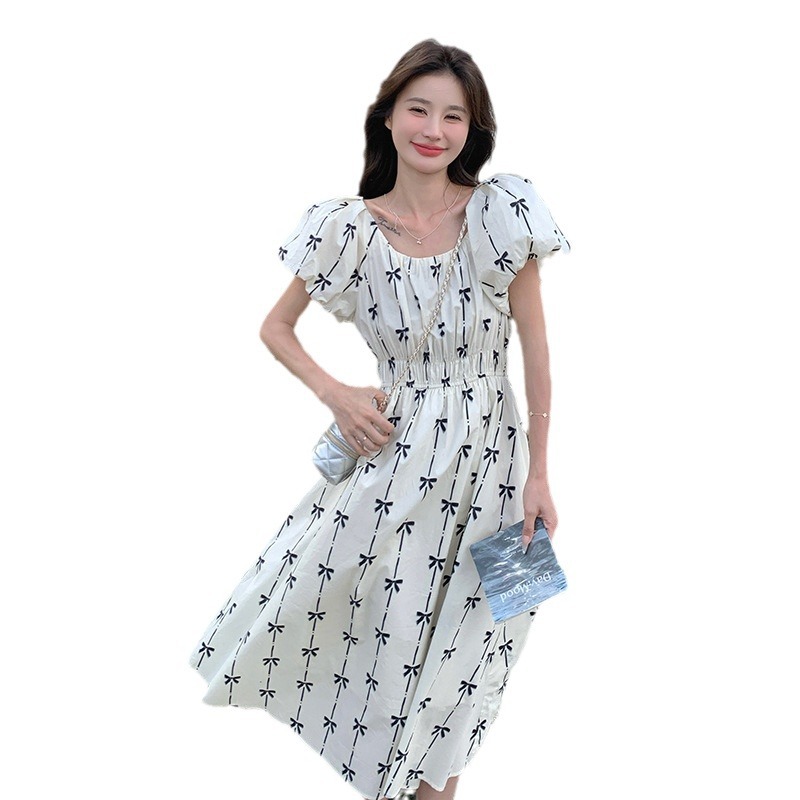 蝴蝶棉布印花新中式连衣裙子女装夏季新款收腰小众显瘦海边