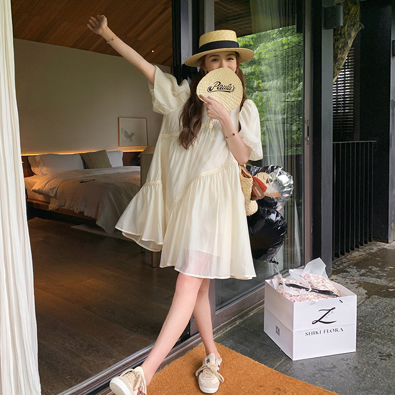 法式小个子白色短袖连衣裙子女装新款夏季初恋清纯奶甜短裙