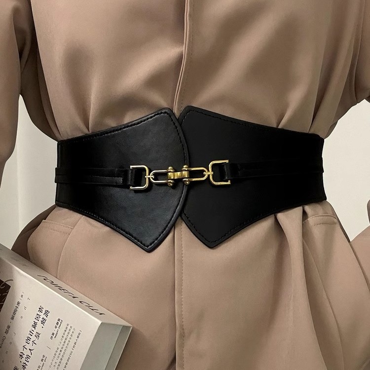 简约宽腰带女士软皮装饰百搭大衣西装配裙子毛衣收腰黑色欧美腰封