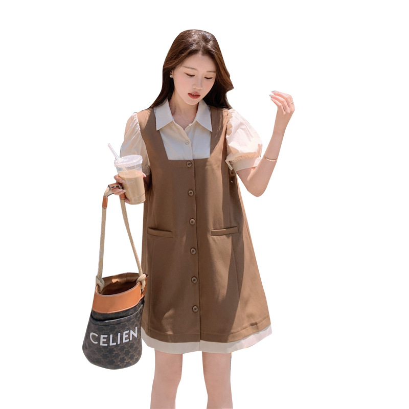 假两件衬衫连衣裙夏季女装法式桔梗御姐气质茶盐系微胖穿搭初恋裙