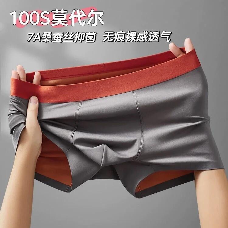 100S莫代尔男士内裤7A抑菌双面无痕桑蚕丝底档内裤男100支四角裤
