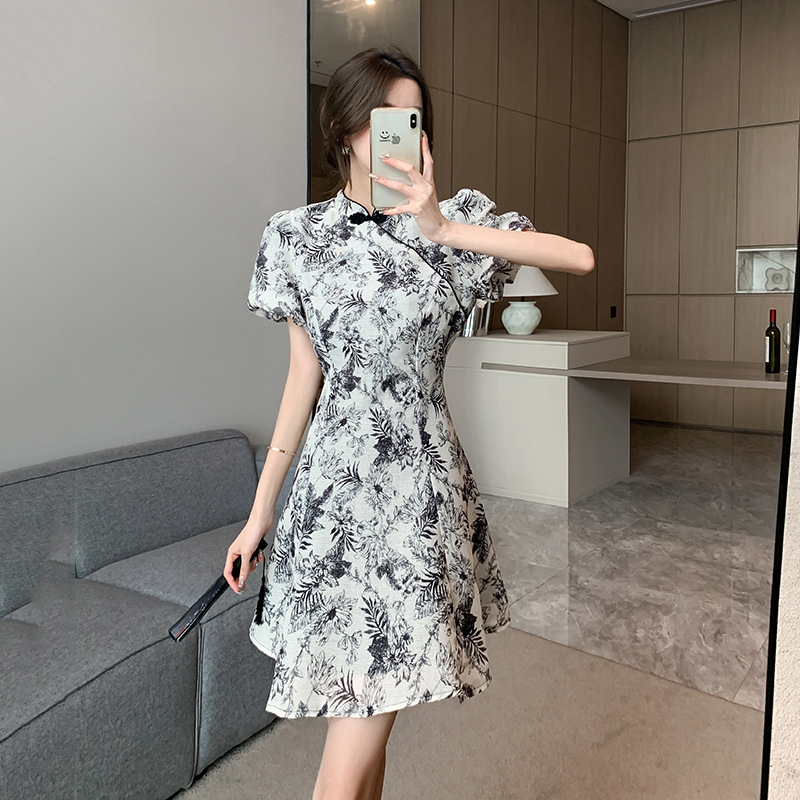 新中式国风复古改良旗袍小个子修身短款连衣裙夏季新款
