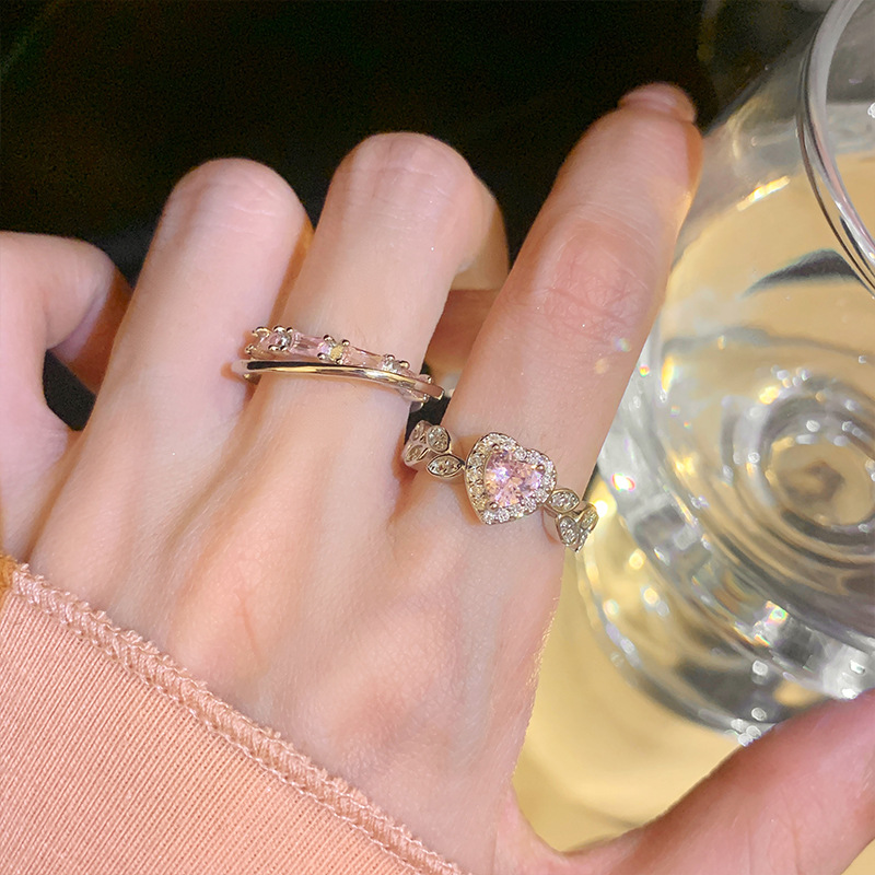 新款甜心宝贝浪漫爱心锆石戒指女百搭个性甜美情侣对戒个性时尚指