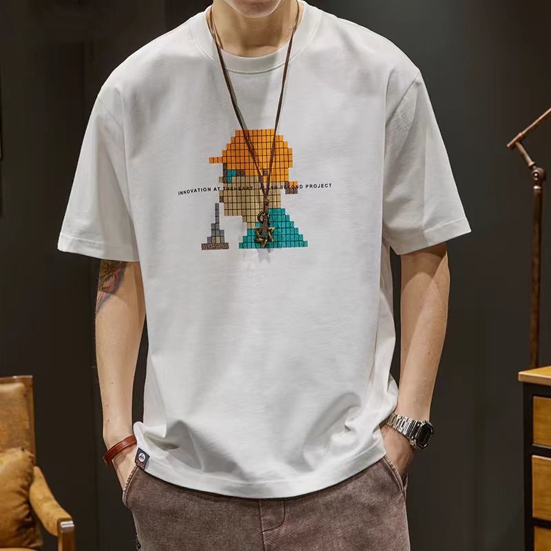 重磅250g印花短袖T恤男夏季潮流ins宽松大码纯棉圆领上衣半袖体恤