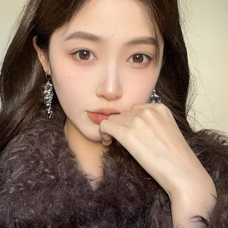 法式浪漫亮晶晶银色贝壳耳环女气质夸张长款耳坠小众时尚新款耳饰