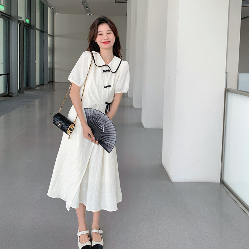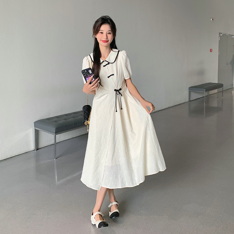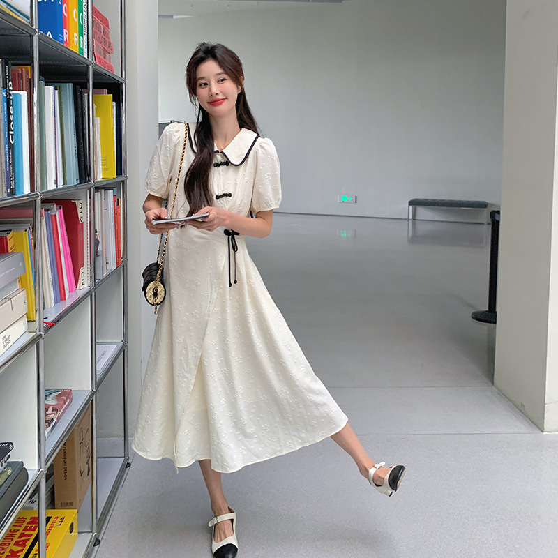 新中式连衣裙法式温柔风奶杏色翻领连衣裙女夏季新款a字裙子