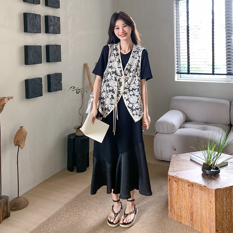 蕾丝马甲连衣裙套装春夏法式新款收腰显瘦镂空小众海边度假