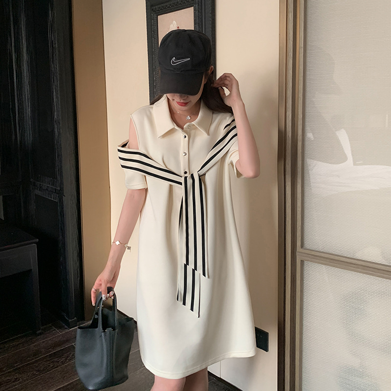 时尚露肩系带欧洲站新款夏季中长款连衣裙女收腰显瘦A字