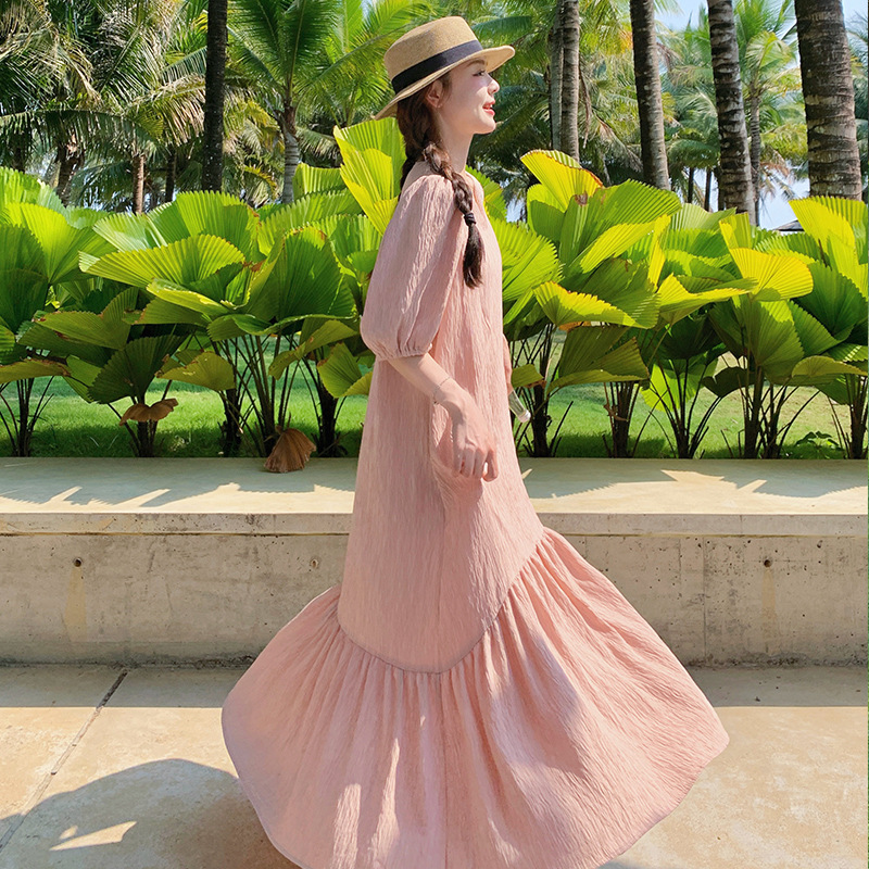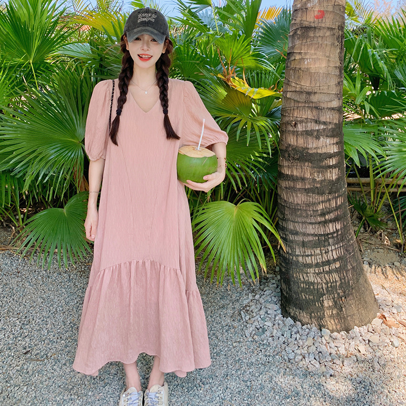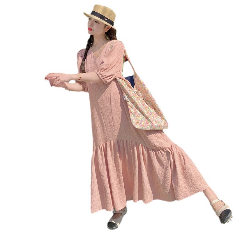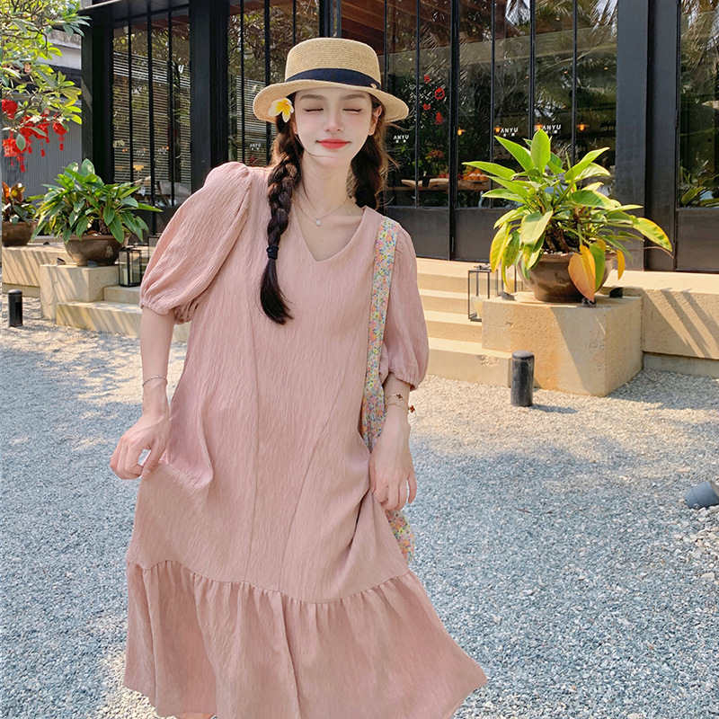 短袖连衣裙女夏季薄款新款修身显瘦法式拼接直筒遮肚子a字裙