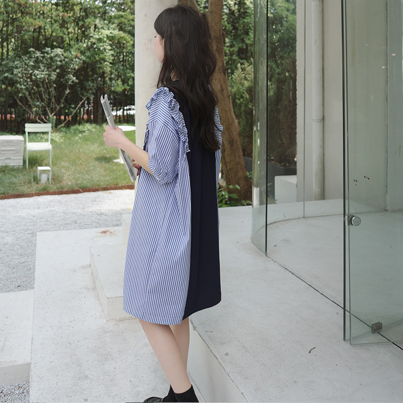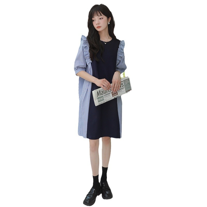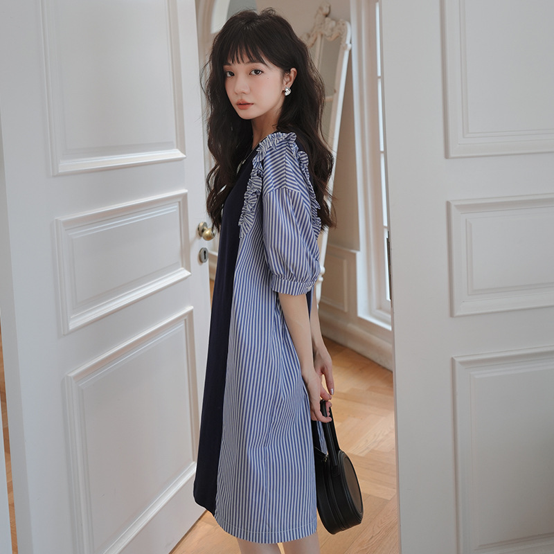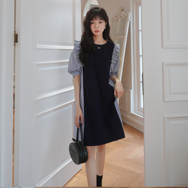 年夏季女装法式气质冷淡风拼接格纹休闲假两件显瘦连衣裙