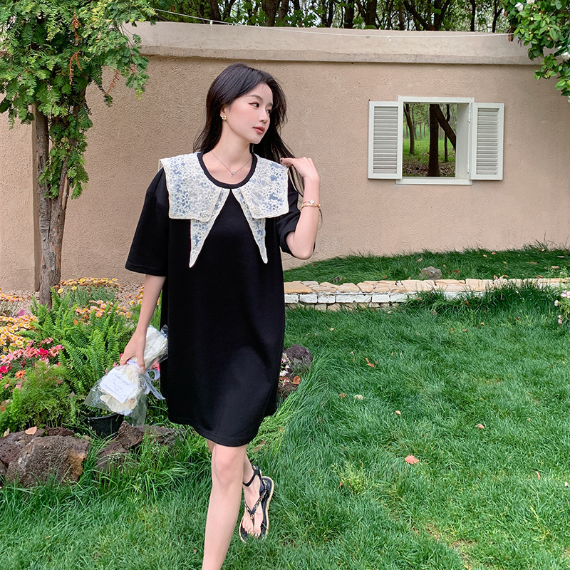 黑色拼接休闲polo连衣裙女夏法式气质显瘦茶歇抽绳修身t恤短裙