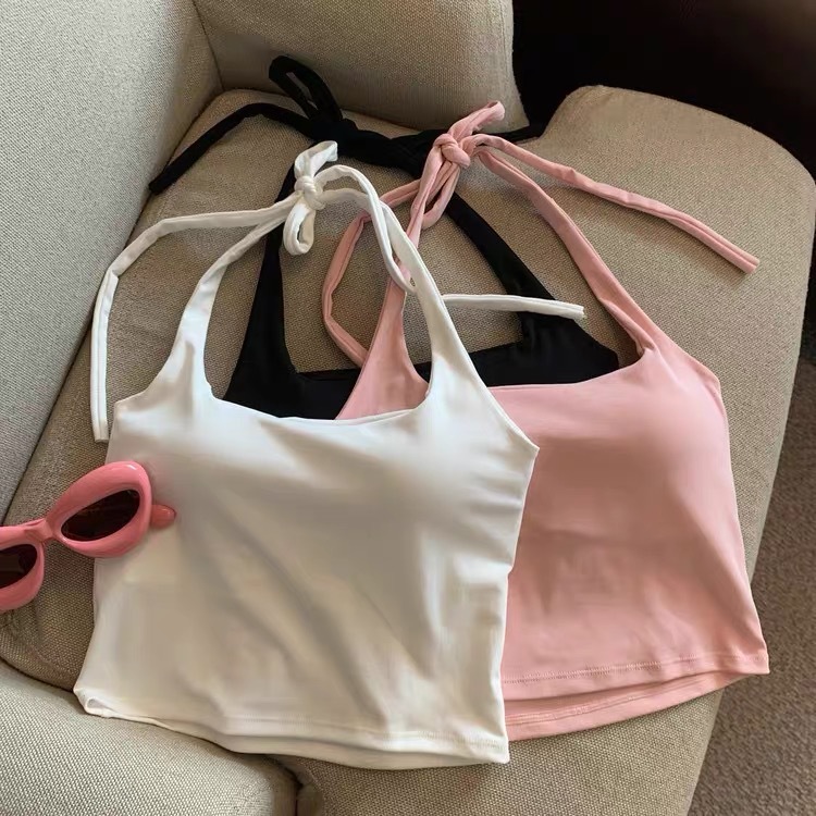 纯欲风设计感系带挂脖背心小吊带外穿美背修身短款打底辣妹上衣女