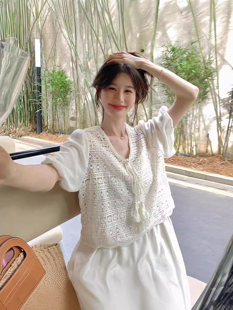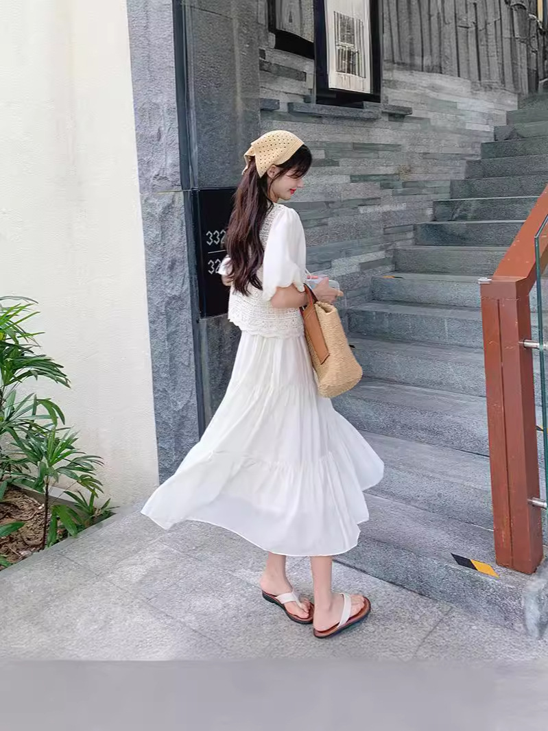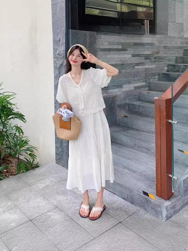 夏新款米白色两件套连衣裙度假风韩系两件套连衣裙挚爱连衣裙