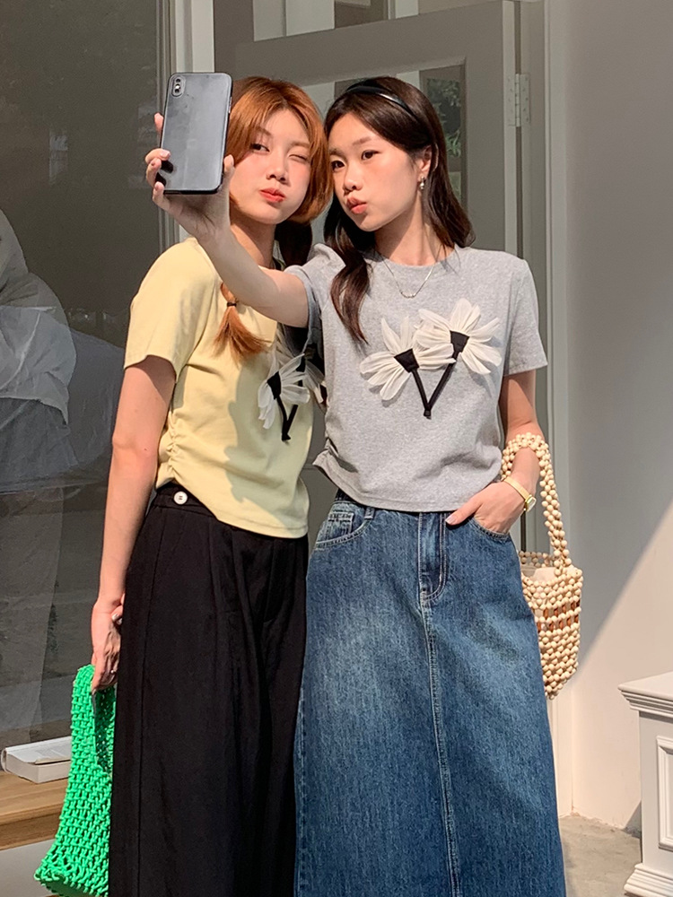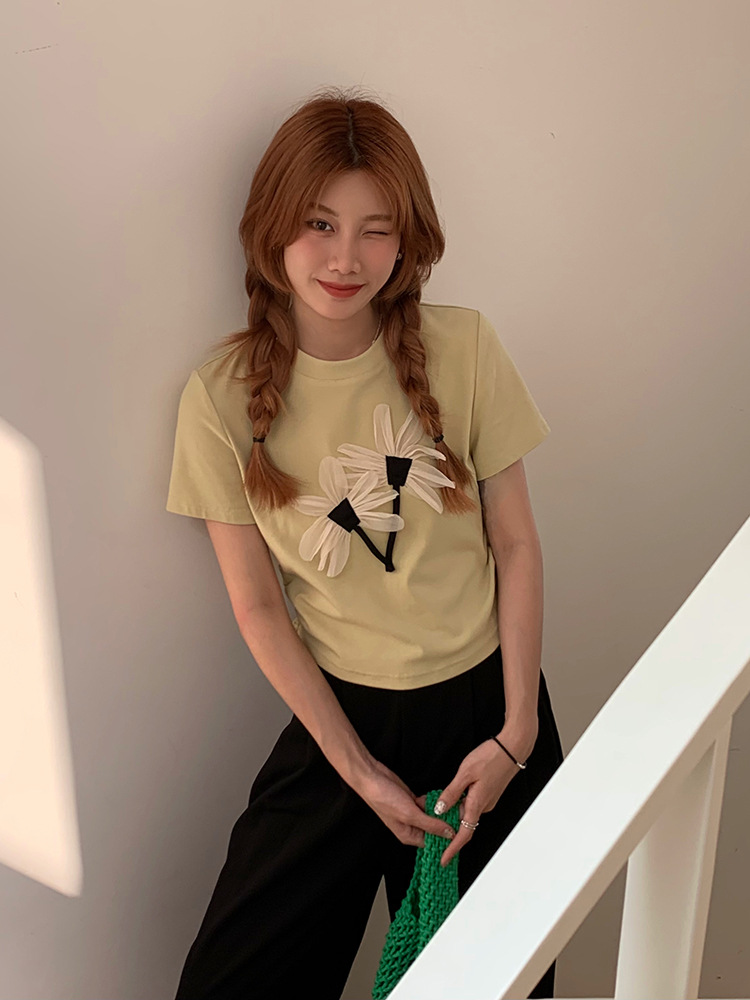 THE BLANK 短袖字母立体花朵T恤女装夏季新款打底上衣5876