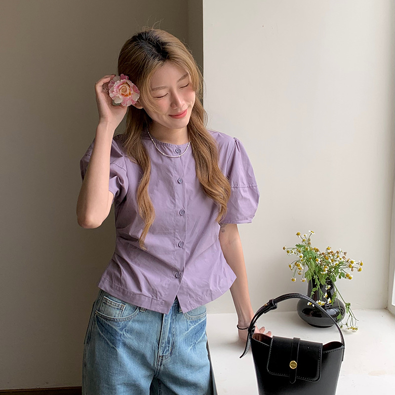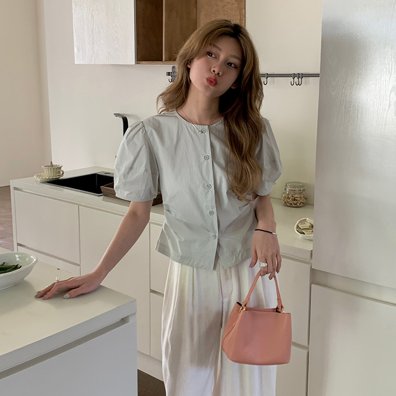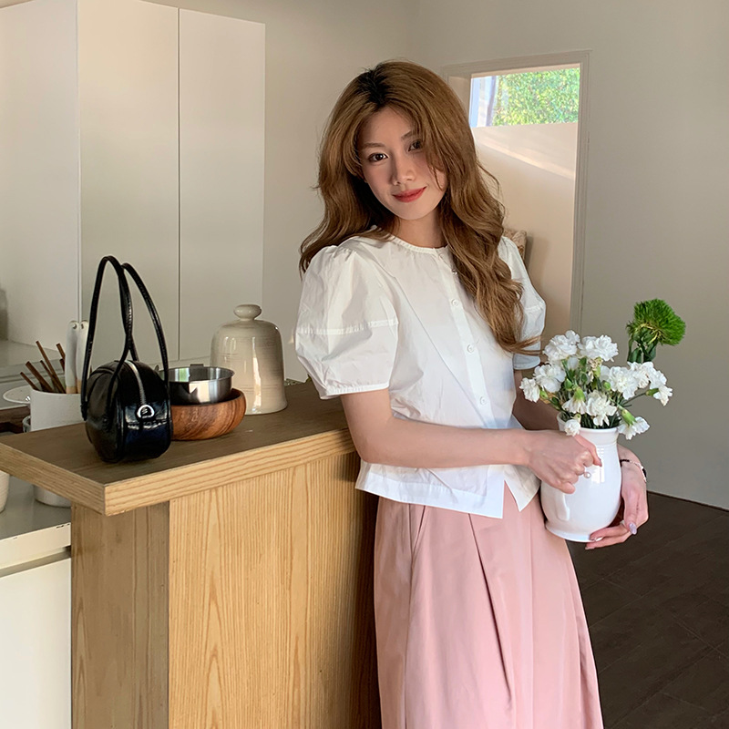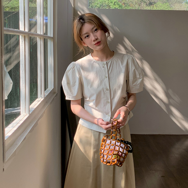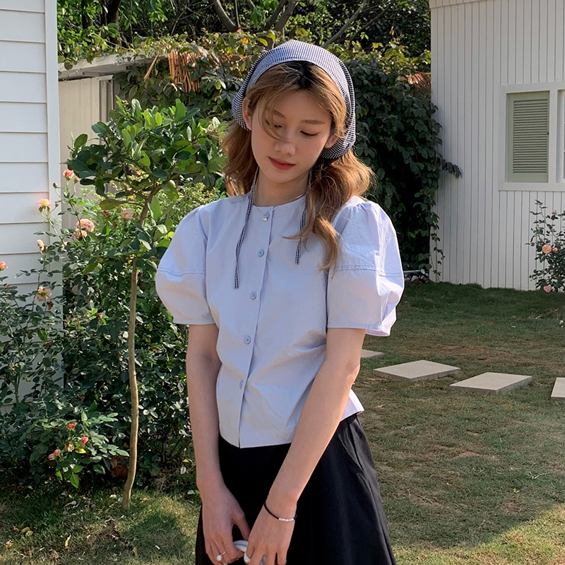 THE BLANK白色衬衫女夏季新款韩版ins上衣宽松短袖衬衣女6003