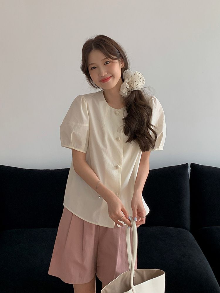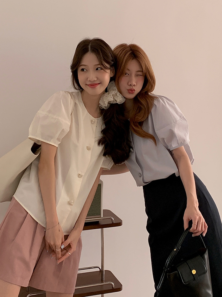 THE BLANK 爱心纽扣减龄衬衫女装夏季韩系新款短袖开衫5892