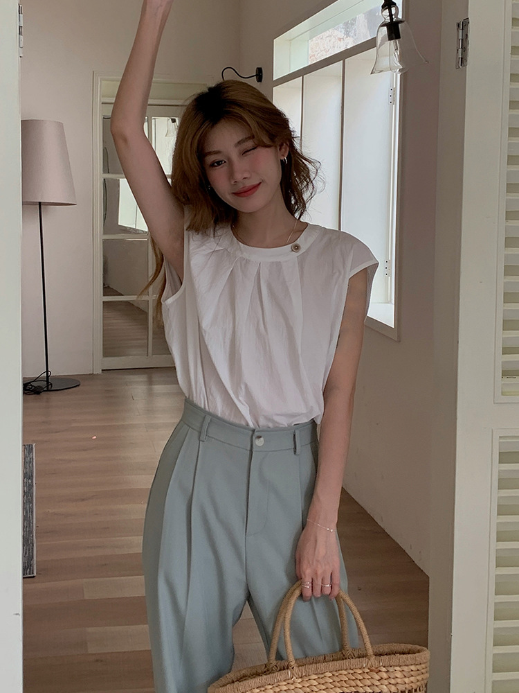 THE BLANK 白色无袖衬衫夏季新款韩版ins上衣宽松衬衣女装6062
