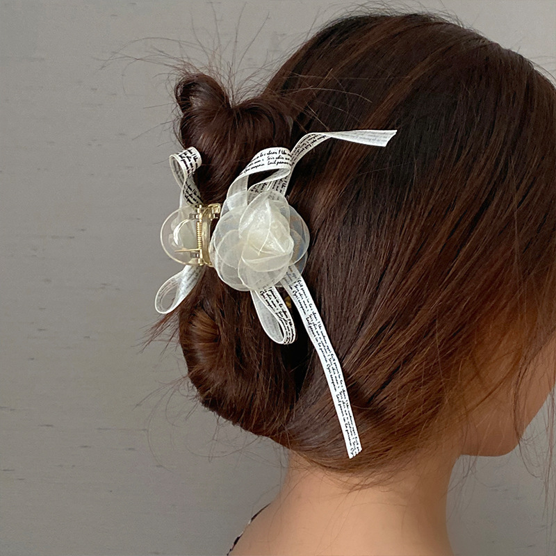法式优雅山茶花发夹蝴蝶结后脑勺抓夹超仙发饰新款网红头饰