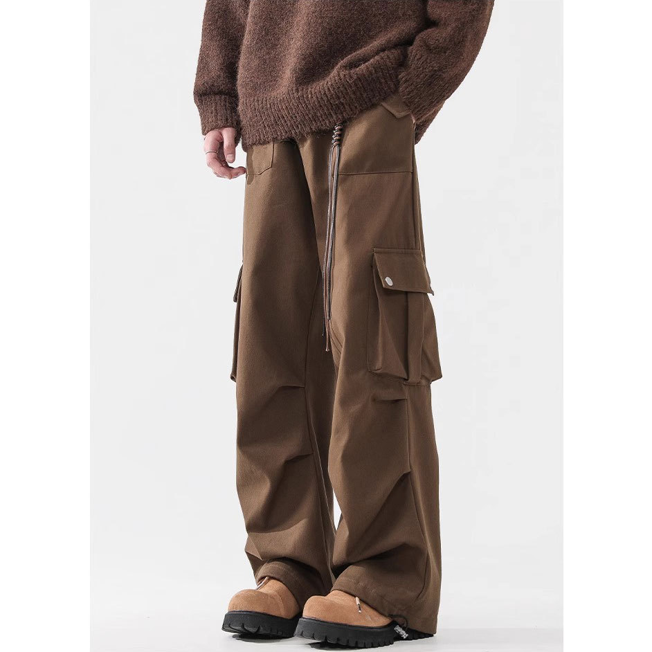 日系复古设计感褶皱休闲裤男春秋季新款宽松阔腿工装百搭裤子