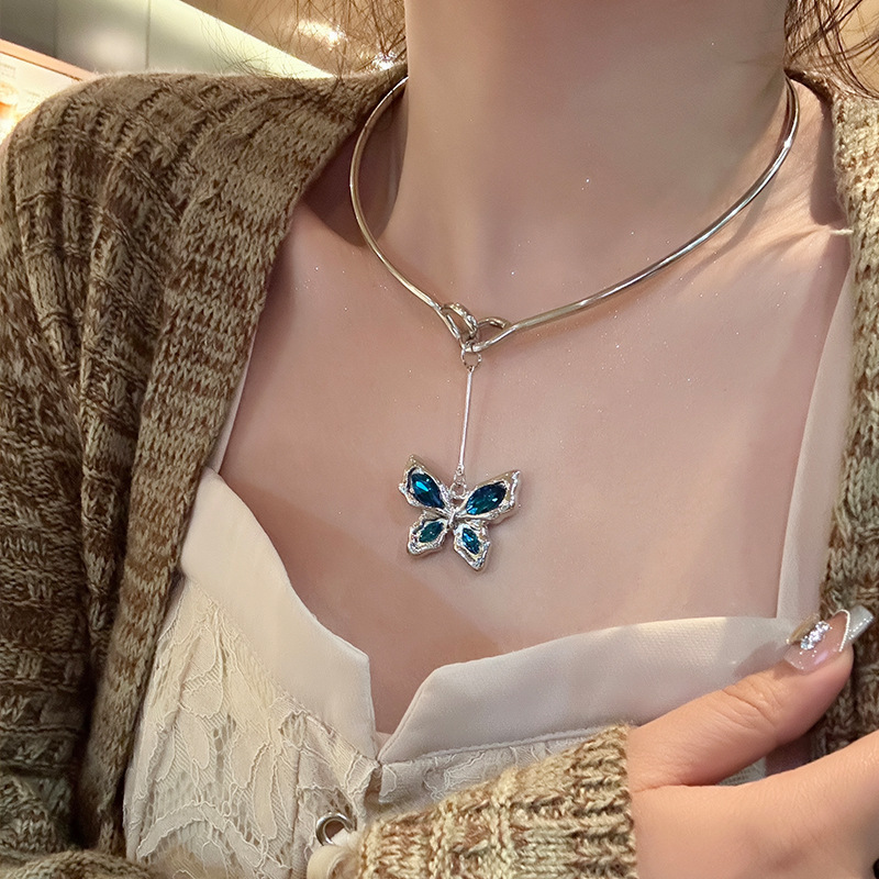 甜酷风蓝水晶蝴蝶项圈女高级感个性y2k项链ins独特choker锁骨链潮