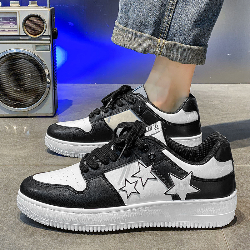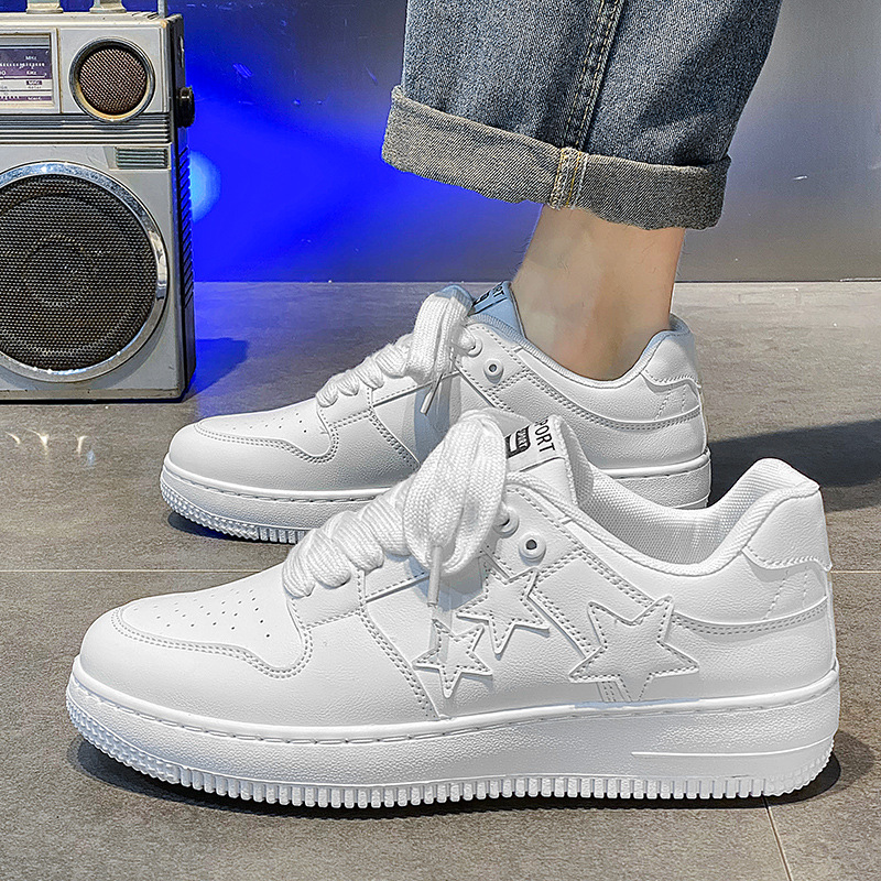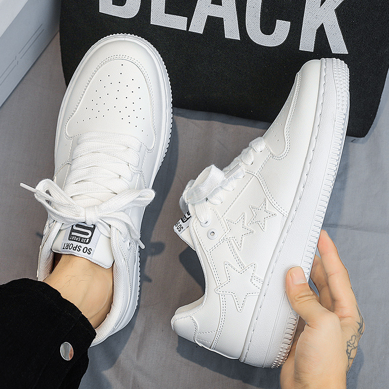星星厚底百搭小白鞋男低帮简约时尚潮流男士运动鞋休闲鞋滑板鞋潮