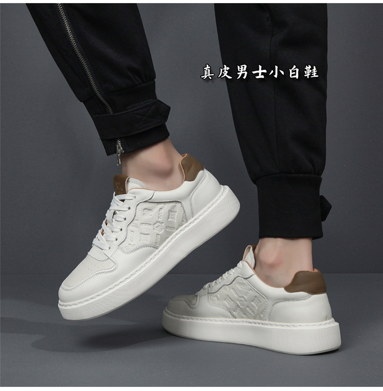 真皮板鞋男鞋高端百搭鞋子夏季新款透气休闲鞋头层牛皮男士小白鞋