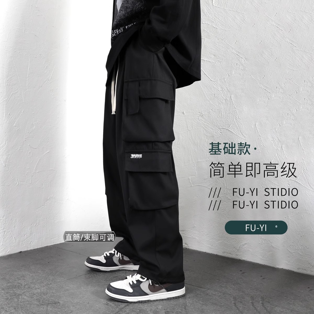 工装裤男士春夏款潮牌阔腿休闲长裤胖子加肥加大码直筒宽松运动裤