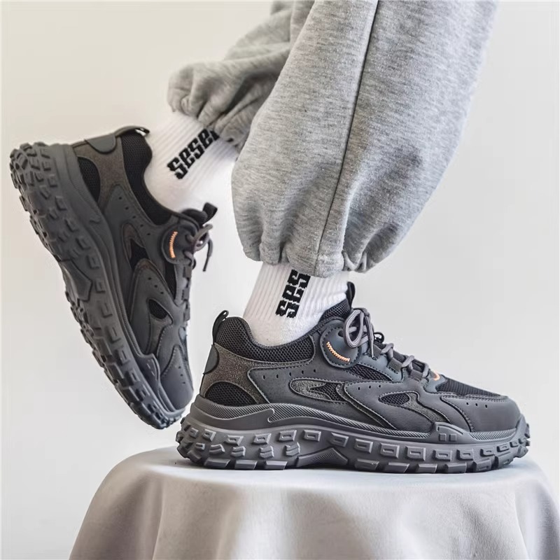 春季男鞋运动休闲老爹潮鞋百搭工作上班鞋子工地防滑轮胎底劳保鞋