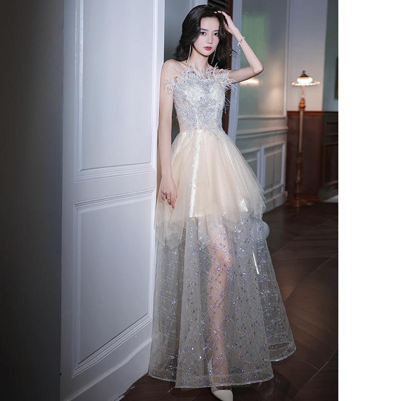 晚礼服女风范成人毕业宴会气质抹胸一字肩艺考轻奢小众设计感仙气
